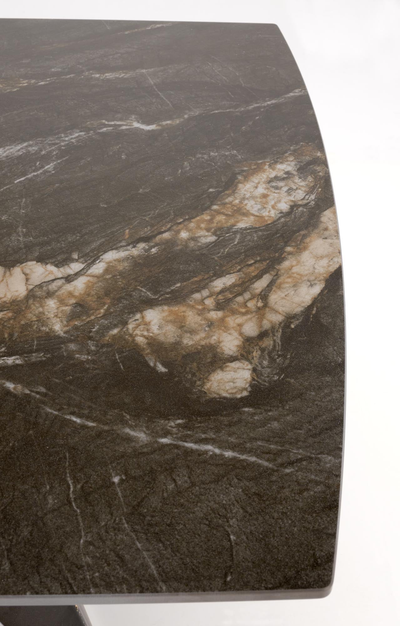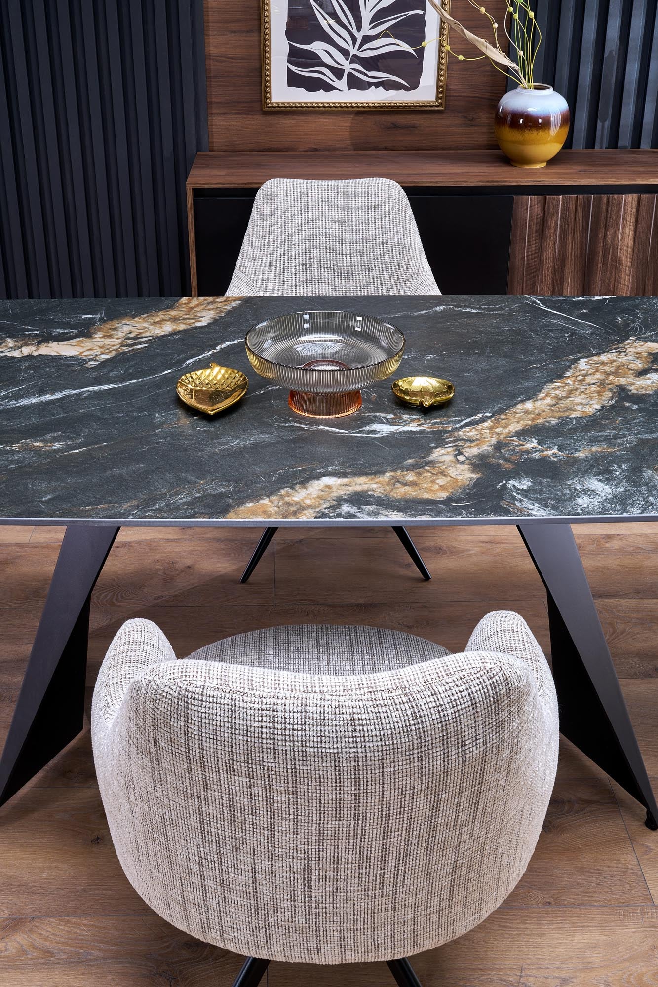 Az Acorn étkezőasztal merész, mégis kifinomult megjelenésével a modern enteriőrök központi elemévé válik. A mély, márványhatású asztallap arany erezetével exkluzív hatást kelt, míg az egyedi, szögletes fém lábszerkezet stabil alapot biztosít, miközben modern ipari dizájnt tükröz. A bővíthető funkciónak köszönhetően az Acorn rugalmasan alkalmazkodik a családi étkezésekhez és a nagyobb vendégségekhez egyaránt. A prémium anyaghasználat és a precíz kidolgozás garantálja az időtálló minőséget, így ez az asztal nemcsak a kényelemről és a funkcionalitásról, hanem a stílusos otthonról is gondoskodik.