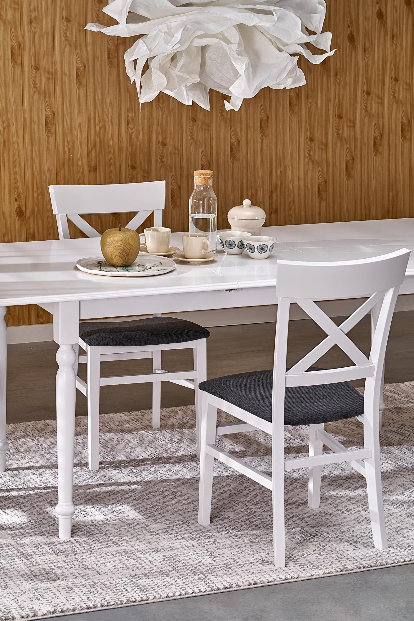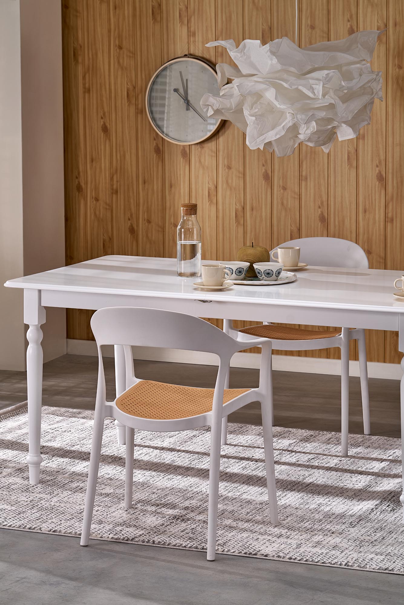Az Ally étkezőasztal a klasszikus vidéki hangulatot és a modern funkcionalitást ötvözi. A hófehér, bővíthető asztallap letisztult megjelenést kölcsönöz, míg a finoman megmunkált, hagyományos oszloplábas szerkezet időtlen eleganciát sugall. Kiváló választás skandináv, country vagy vintage stílusú enteriőrökbe, ahol a meghitt családi étkezések és baráti összejövetelek központi eleme lehet. Az Ally asztal praktikus kialakítása és letisztult színvilága könnyedén illeszkedik a világos és természetes tónusokhoz, így kellemes, harmonikus atmoszférát teremt az otthonodban.