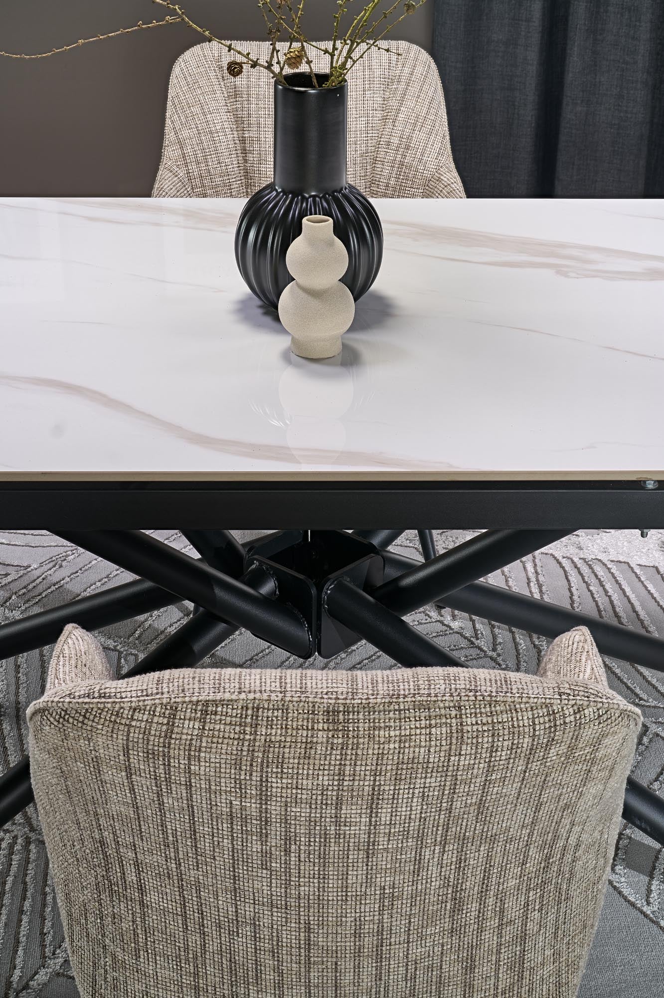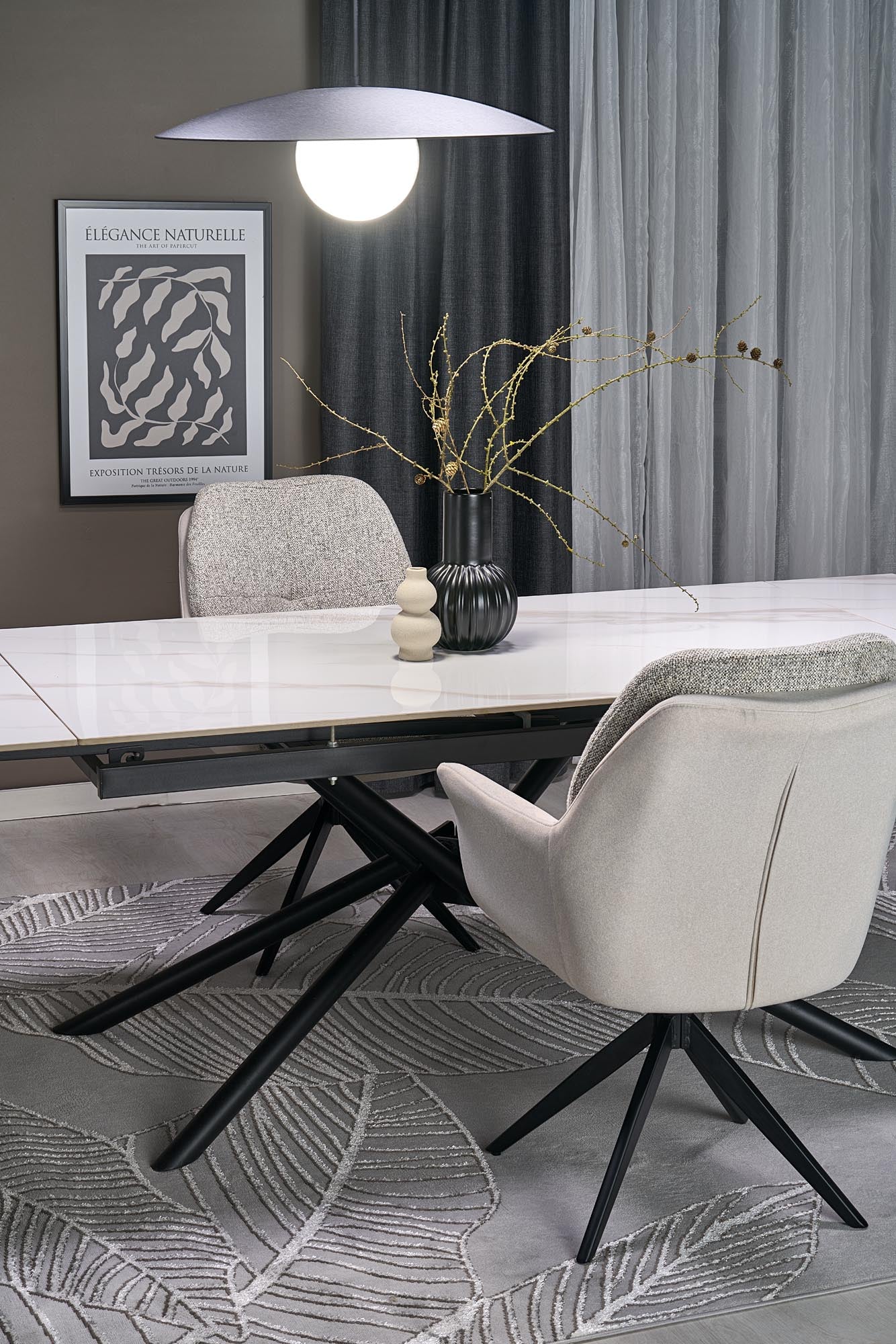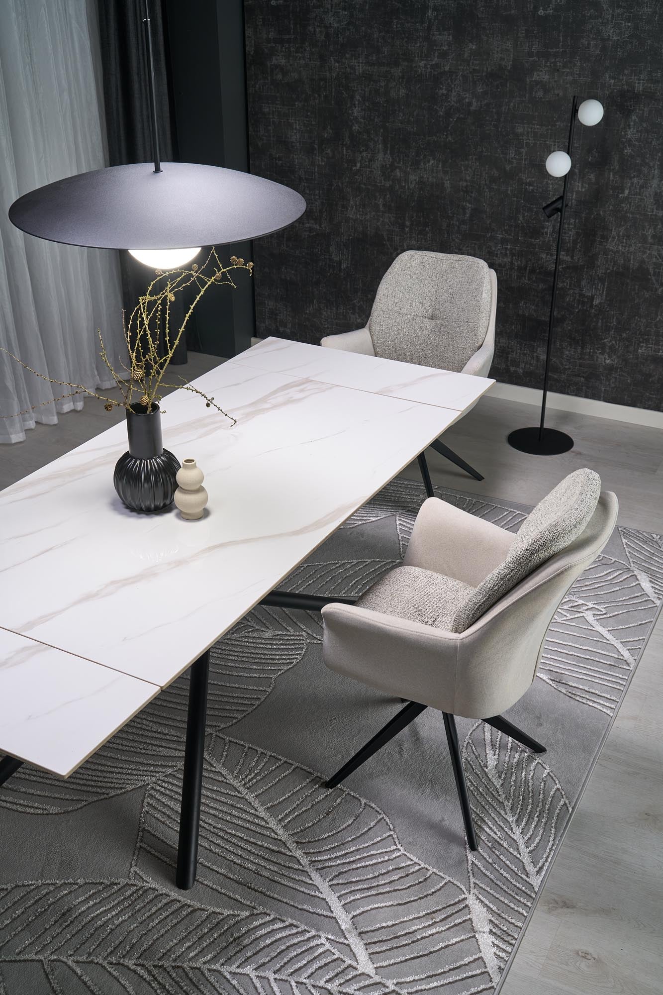 Az Angel asztal a minimalizmus és a design találkozása: hófehér, márványhatású lapja letisztult eleganciát sugároz, míg a fekete, sugarasan szétfutó lábszerkezet dinamizmust és egyedi karaktert ad. Ez a kettősség teszi igazán különlegessé – egyszerre stabil és légies, időtálló és modern. Kompakt formájával ideális választás kisebb étkezőkbe is, mégis bőséges helyet biztosít a közös étkezésekhez. A strapabíró felület könnyen tisztítható, így az Angel nemcsak szép, hanem praktikus társ a mindennapokban.