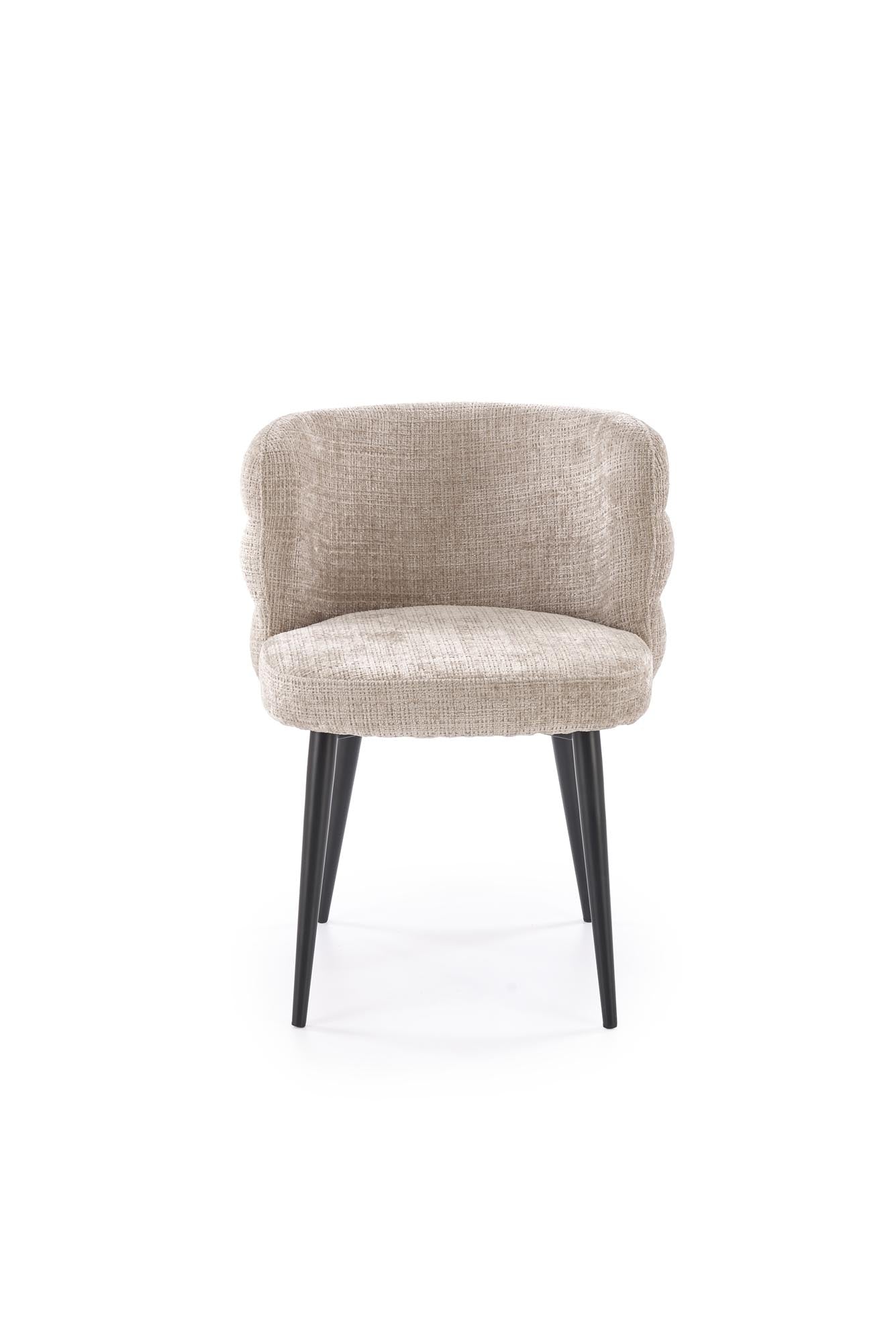 A Baxter szék egy igazán karakteres és stílusos darab, amely modern megjelenését különleges részleteinek köszönheti. A puha, vastagon párnázott háttámla, mely íves formájával öleli körbe a hátat, nemcsak kényelmet, hanem vizuális izgalmat is kínál. A texturált kárpit meleg, természetes árnyalatban érhető el, amely tökéletesen illeszkedik bármilyen enteriőrbe. A keskeny, fekete fém lábak elegáns kontrasztot teremtenek a puha szövettel, miközben légies, mégis stabil alapot biztosítanak a széknek. Legyen szó étkezőről, dolgozósarokról vagy egy hangulatos olvasósarokról, a Baxter minden térben otthonosan mozog.