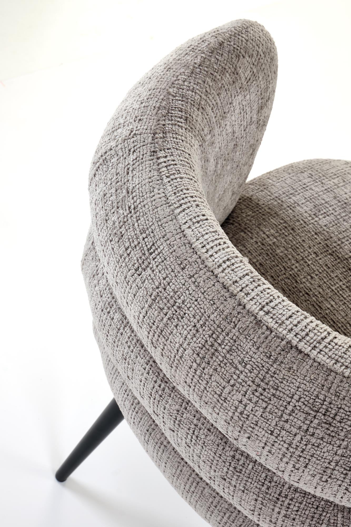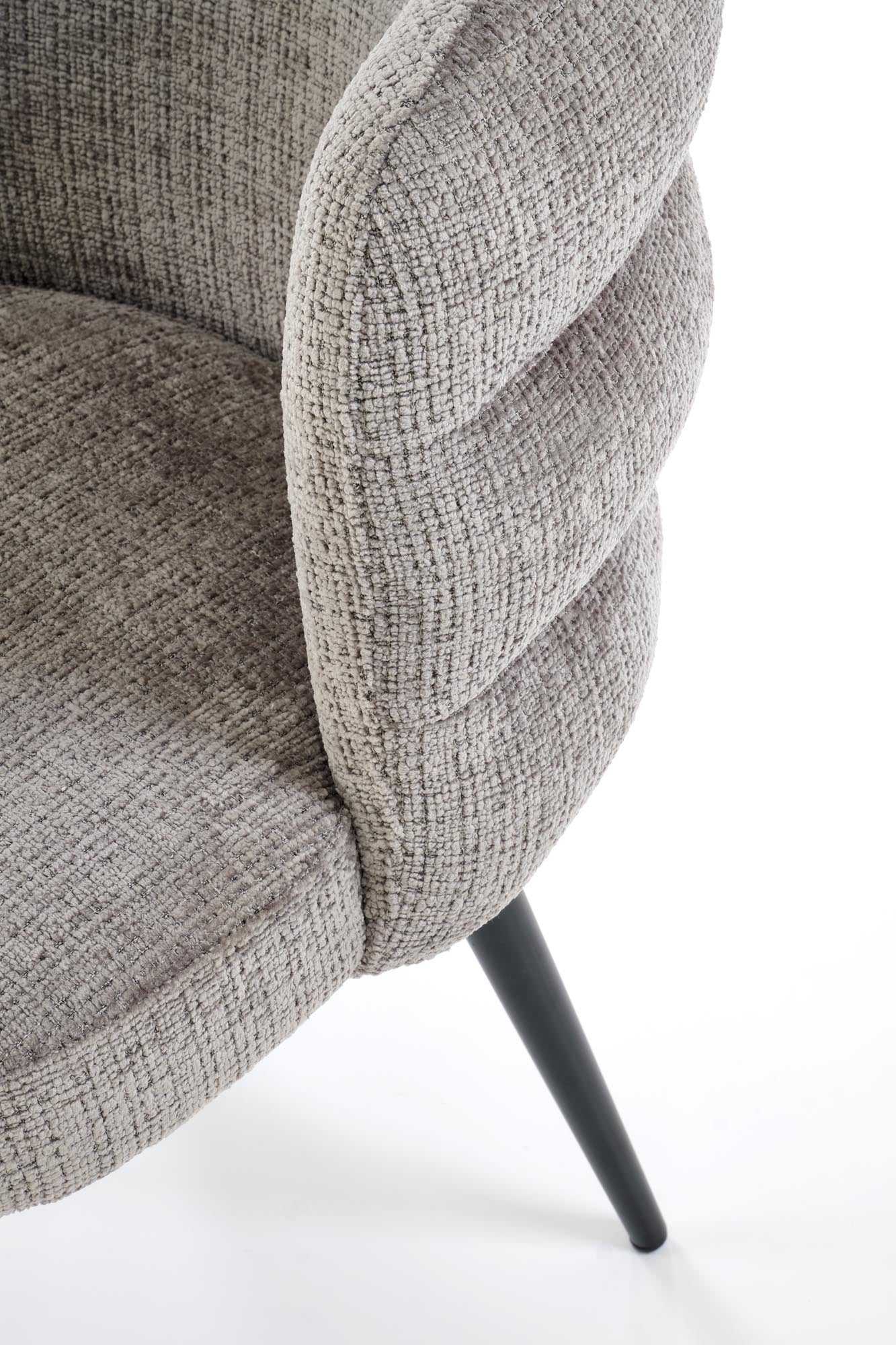 A Baxter szék egy igazán karakteres és stílusos darab, amely modern megjelenését különleges részleteinek köszönheti. A puha, vastagon párnázott háttámla, mely íves formájával öleli körbe a hátat, nemcsak kényelmet, hanem vizuális izgalmat is kínál. A texturált kárpit meleg, természetes árnyalatban érhető el, amely tökéletesen illeszkedik bármilyen enteriőrbe. A keskeny, fekete fém lábak elegáns kontrasztot teremtenek a puha szövettel, miközben légies, mégis stabil alapot biztosítanak a széknek. Legyen szó étkezőről, dolgozósarokról vagy egy hangulatos olvasósarokról, a Baxter minden térben otthonosan mozog.