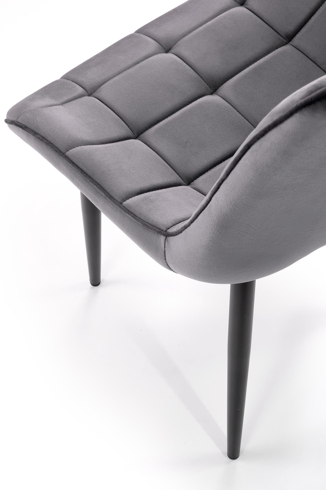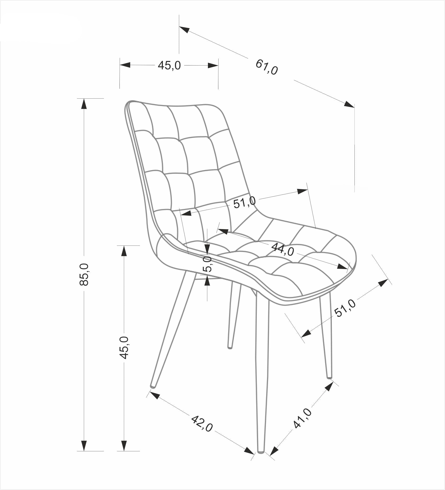 A Becka szék karakteres megjelenésével és modern dizájnjával könnyedén a tér központi eleme lehet. A lekerekített forma, a négyzetes steppelés és a bársonyhatású kárpitozás tökéletes összhangban állnak egymással, így a Becka egyszerre nyújt luxusérzetet és kényelmet. A háttámla és az ülőfelület egybefüggő, ívelt kialakítása ergonomikus tartást biztosít, míg a karcsú fekete fém lábak stabil alapot és letisztult, modern kontrasztot teremtenek a puha felületekkel. A Becka szék nemcsak egy ülőalkalmatosság, hanem egy dizájnstatement, amely kiemeli otthonod vagy irodád karakterét.