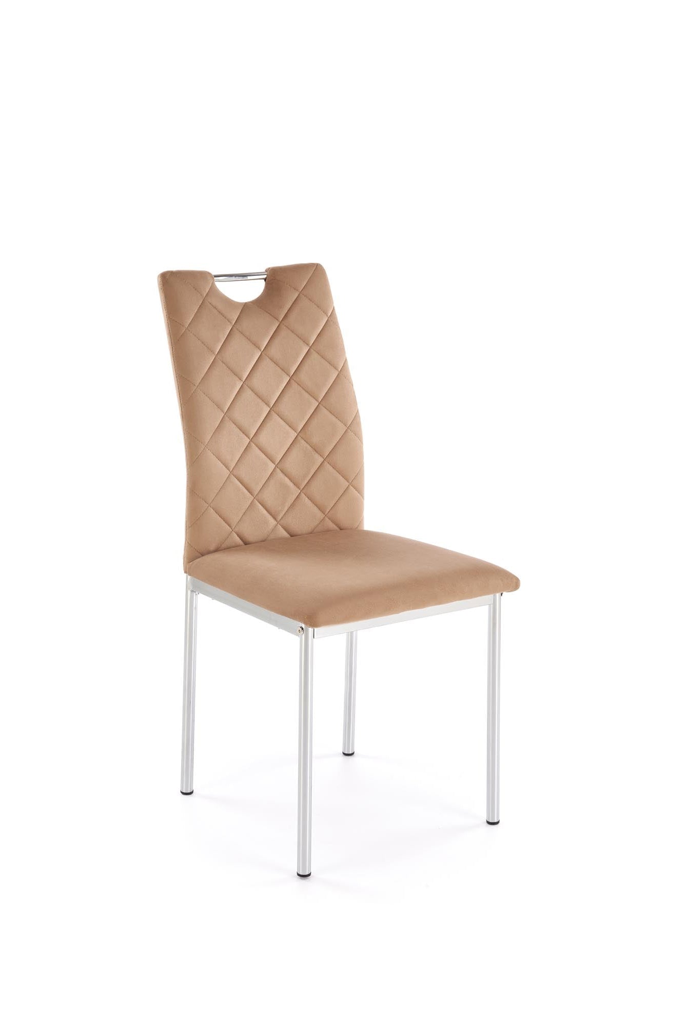 A Bing szék egy praktikus, mégis elegáns darab, amely ideális választás mindennapi használatra. A magas háttámlát gyémántmintás steppelés díszíti, amely vizuálisan is feldobja az egyszerű formavilágot, miközben kellemes tartást biztosít a hát számára. A beépített fém fogantyú a háttámla tetején megkönnyíti a szék mozgatását, legyen szó étkezőről, rendezvényről vagy tárgyalóról. A krómozott fém váz stabilitást nyújt, a kárpitozott ülőfelület pedig gondoskodik a kényelmes ülésélményről. A Bing szék egyszerre funkcionális és esztétikus választás, amely jól bírja a mindennapi használatot, és közben stílusosan egészíti ki a teret.
