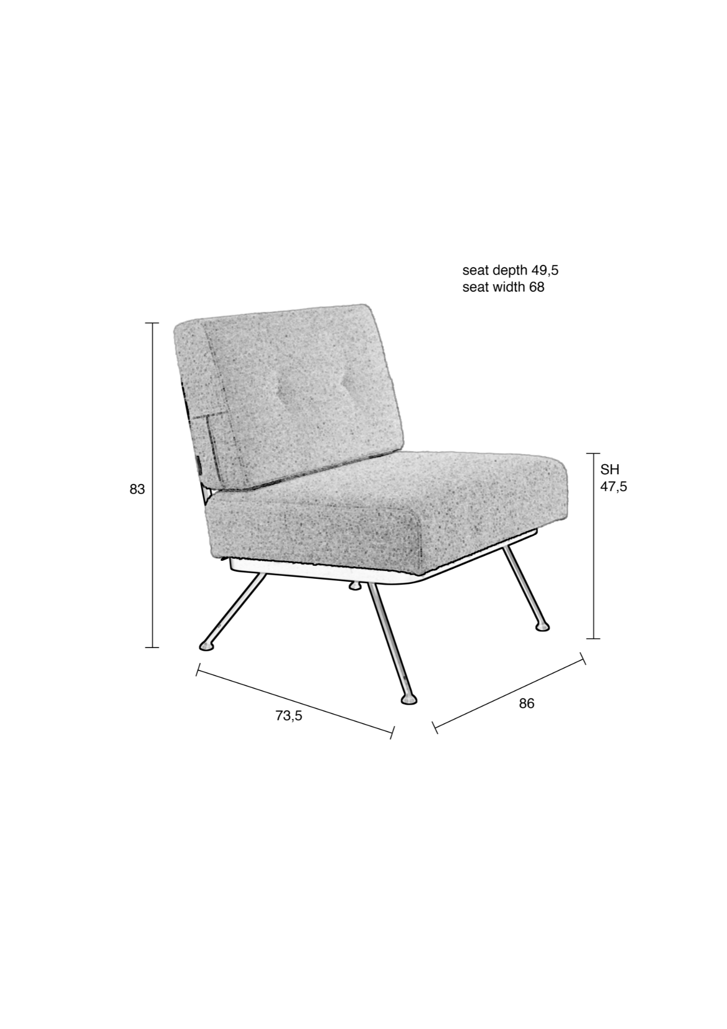 Szélesség 68 cm, Magasság 83 cm, Mélység 73.5 cm
