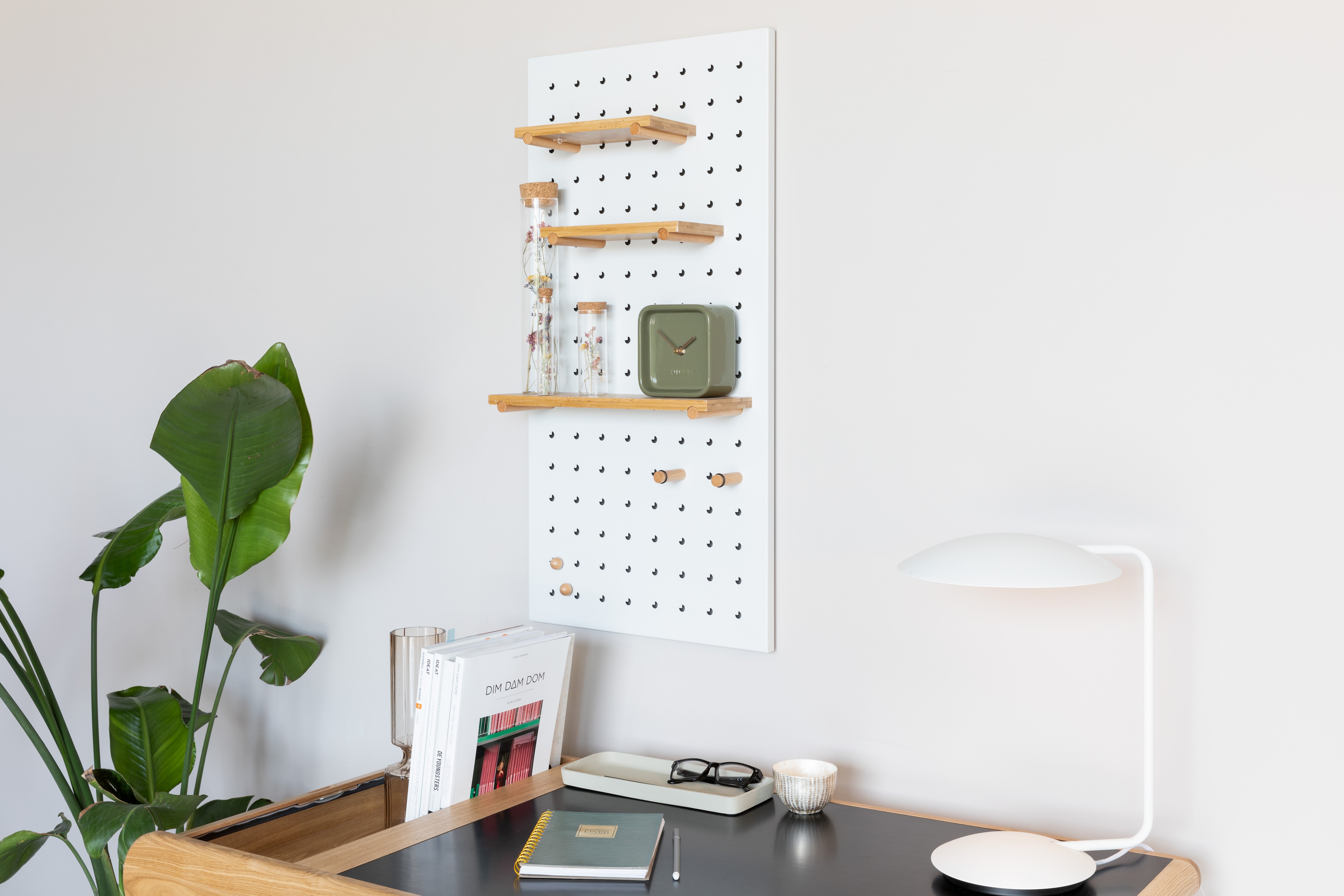 A Bundy lyukacsos fal nemcsak praktikus, hanem egyben kreatív játékteret is kínál számodra. Akaszd fel vízszintesen vagy függőlegesen, kombináld különböző színekben és irányokban, majd alakítsd saját ízlésed szerint. A bambusz polcok, horgok és mágnesek tetszés szerint rendezhetők, így a Bundy mindig új arcát mutatja – évszakról évszakra vagy hangulatodhoz igazodva.