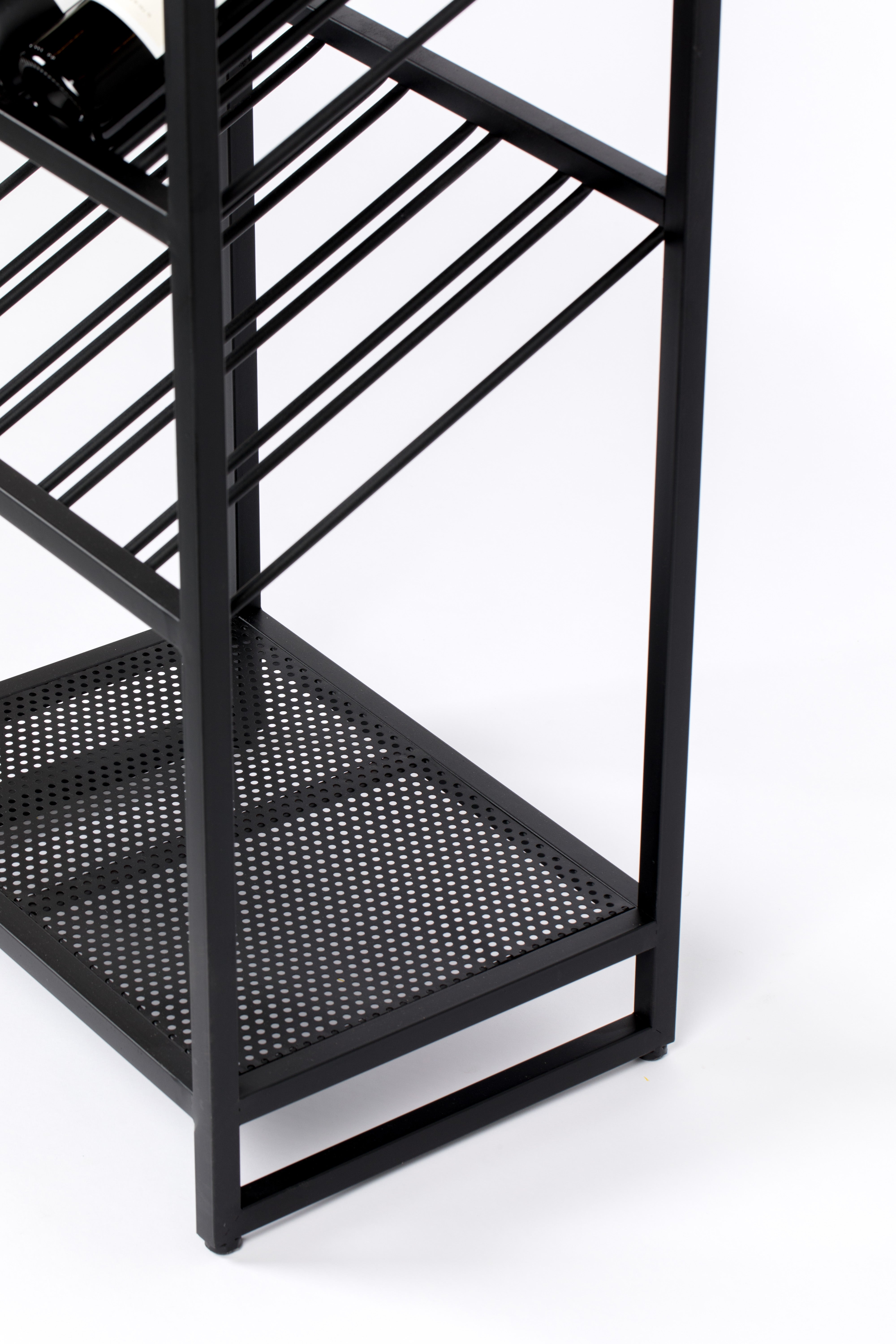 A Cantor bárszekrény a borrajongók álma: letisztult, mégis karakteres megjelenésű darab, amelyben a perforált polcok nemcsak légies hatást keltenek, de biztosítják a palackok megfelelő szellőzését is. A matt fekete acél keret modern, időtálló külsőt kölcsönöz, amely bármilyen enteriőrben megállja a helyét.