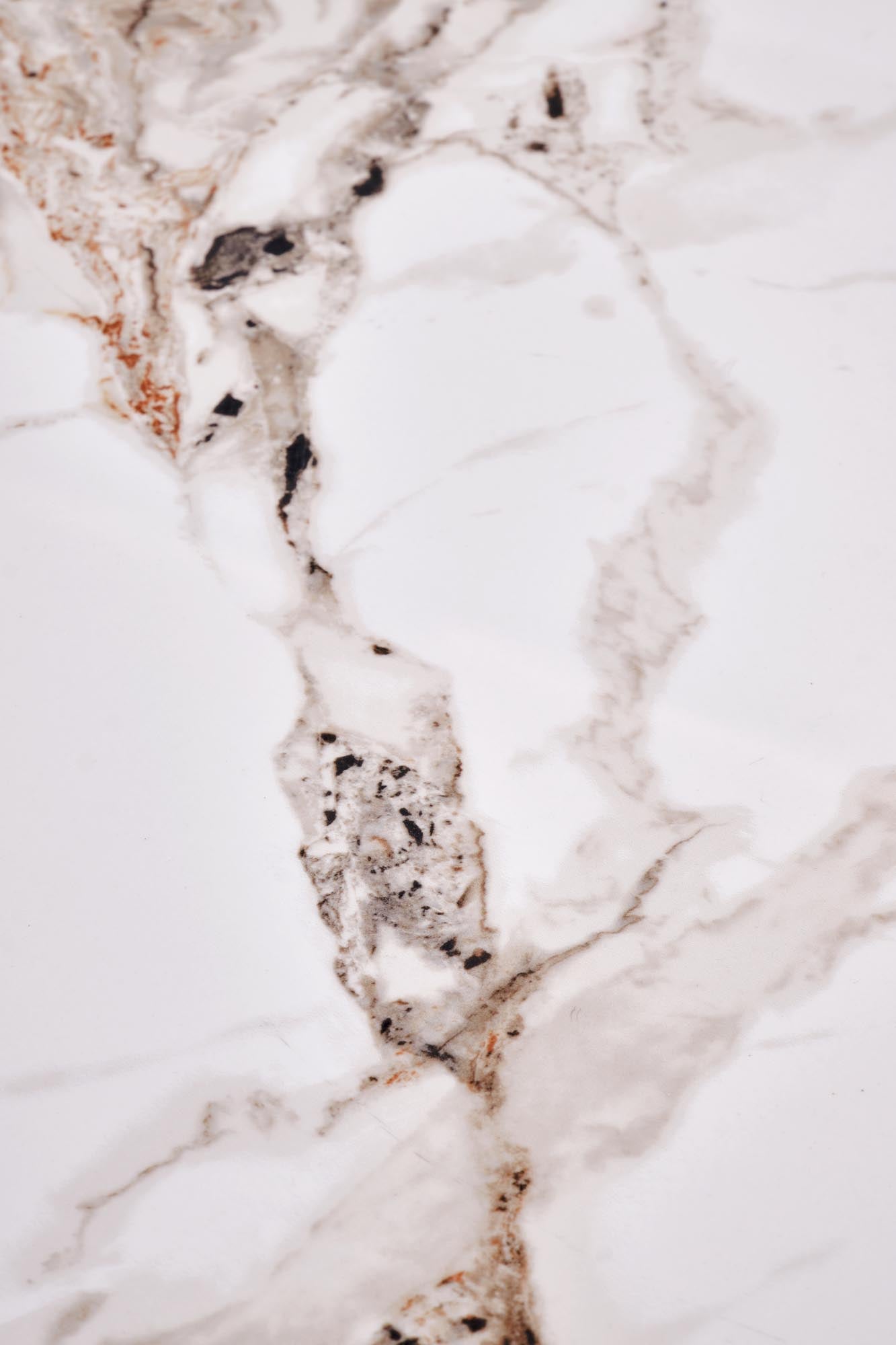 A szintetikus kő anyagú asztallap ellenáll a nedvességnek és a foltoknak, könnyen tisztítható.
