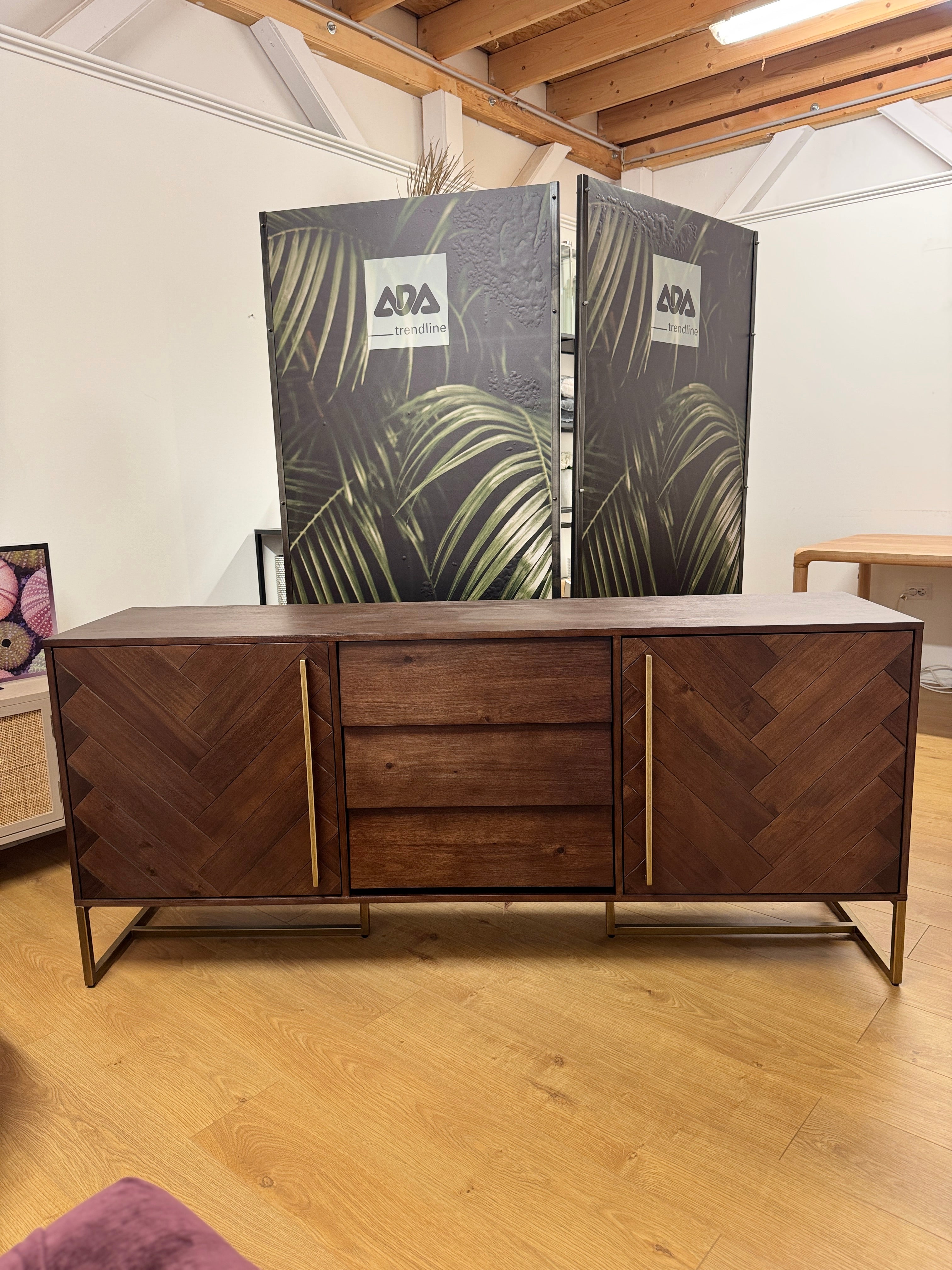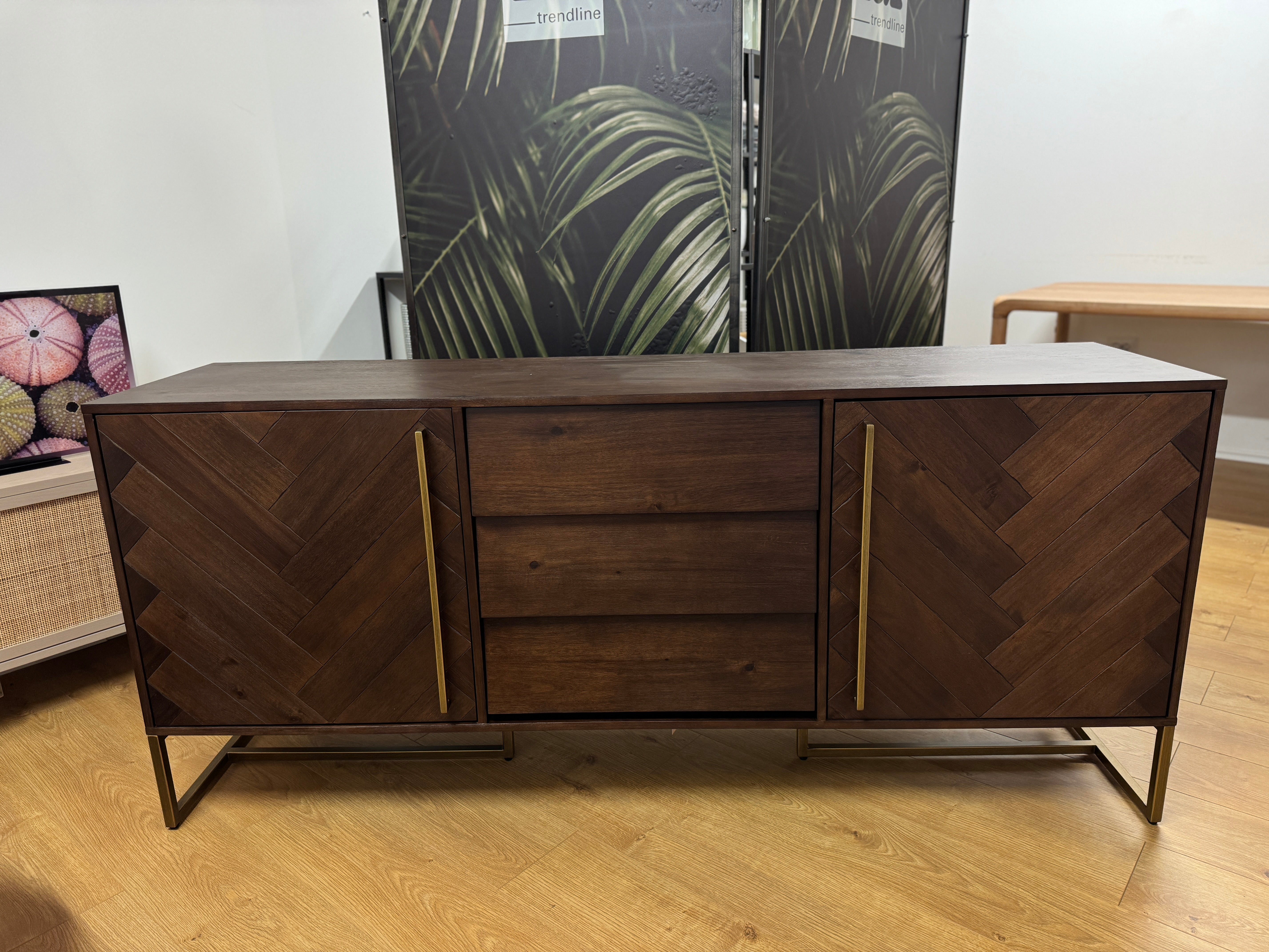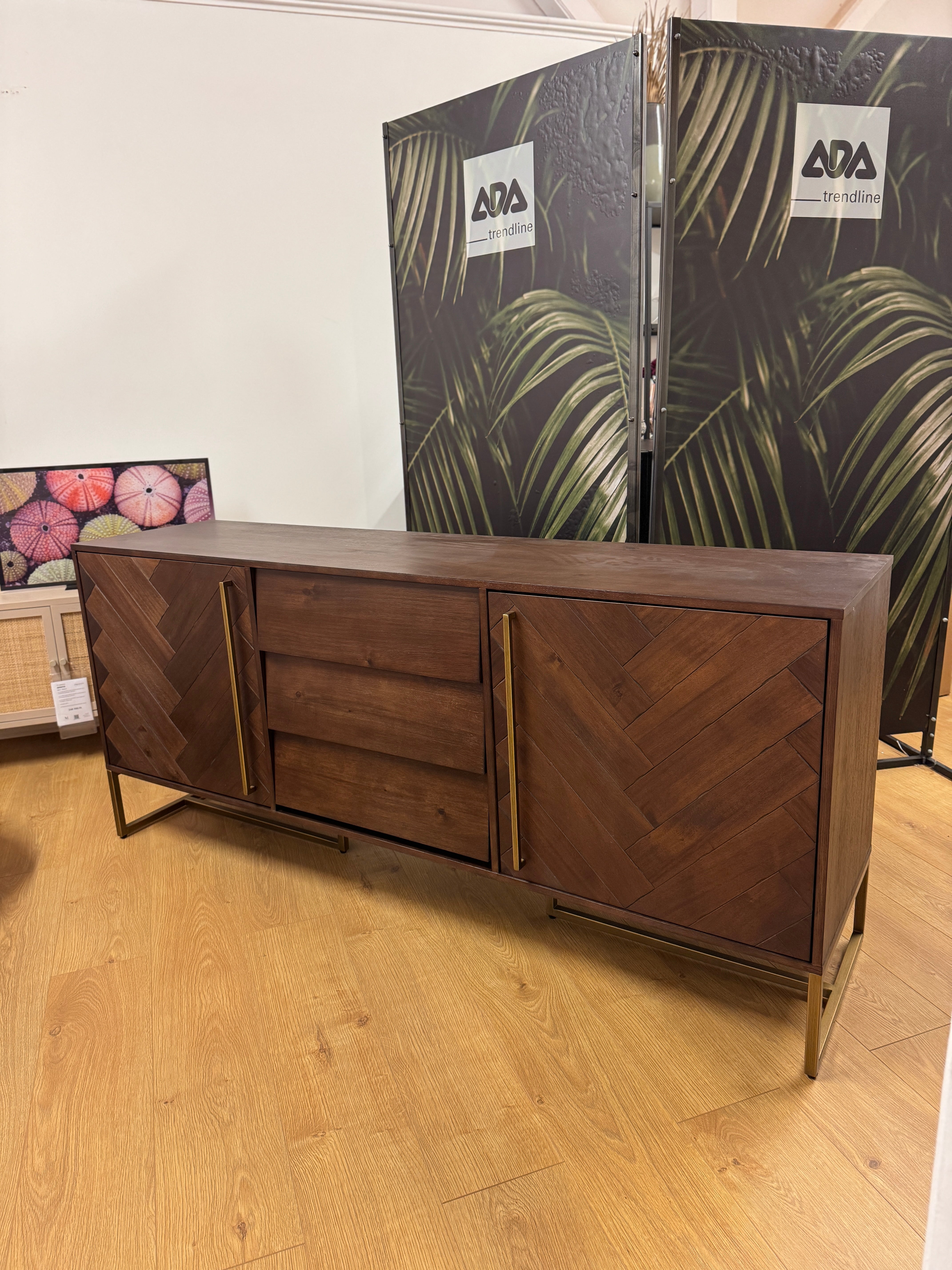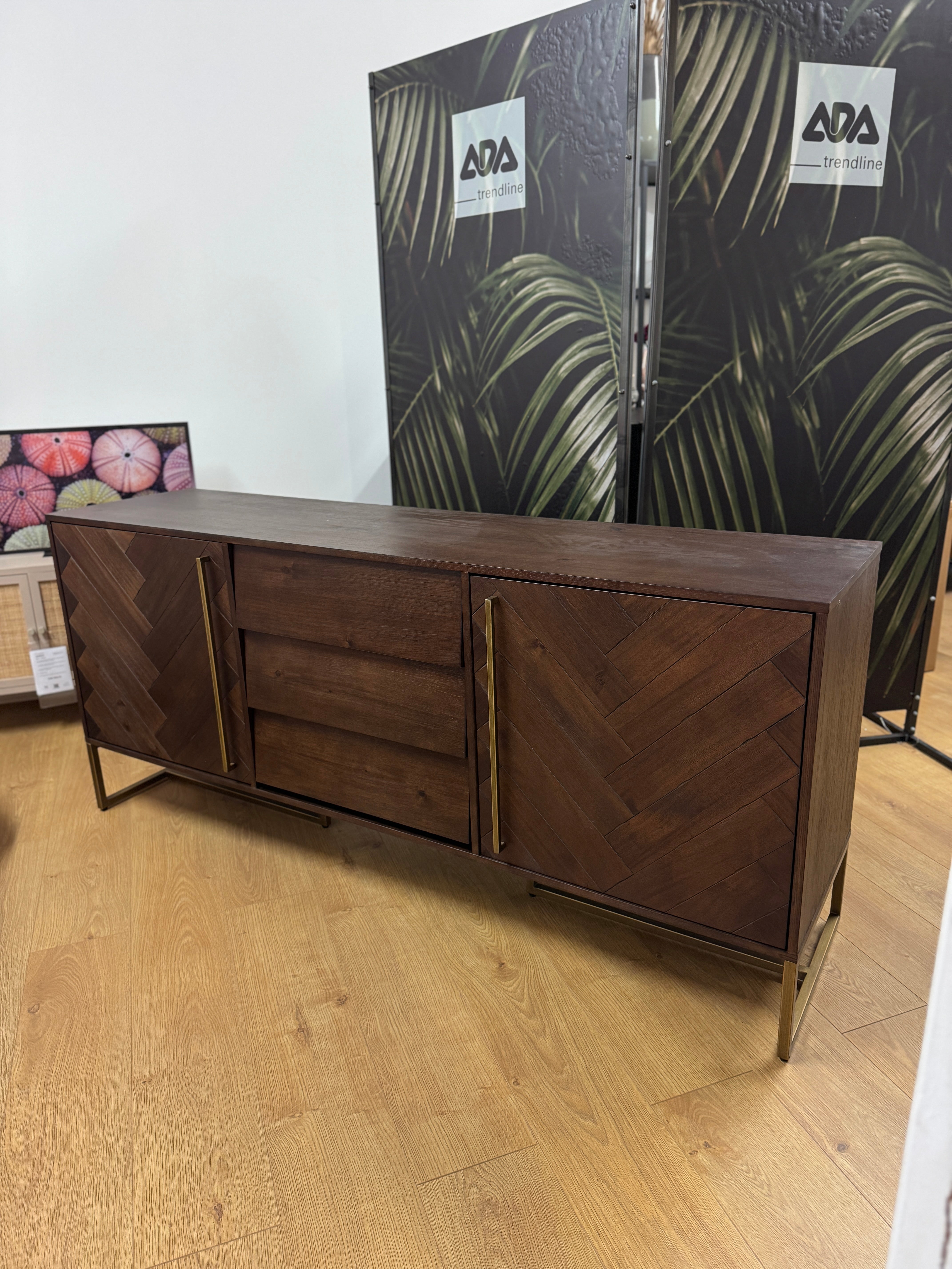 A Class komód a letisztult elegancia és a praktikum tökéletes egyensúlyát testesíti meg. Ez a gyönyörű bútor kiváló minőségű faanyagból készült, gazdag textúrával és mintázattal, amely azonnal magára vonzza a tekintetet. Az arany- vagy fekete színű fém lábak és fogantyúk modern kontrasztot alkotnak a fa természetes melegségével, így bármelyik helyiség stílusos középpontjává válik. A komód három középső fiókkal és két tágas oldalsó szekrénnyel rendelkezik, amelyek rengeteg tárolóhelyet kínálnak, legyen szó ruhákról, edényekről vagy egyéb személyes tárgyakról. A finom kidolgozás és az aprólékos részletek a Class komódot nemcsak funkcionálissá, hanem esztétikailag is vonzóvá teszik.