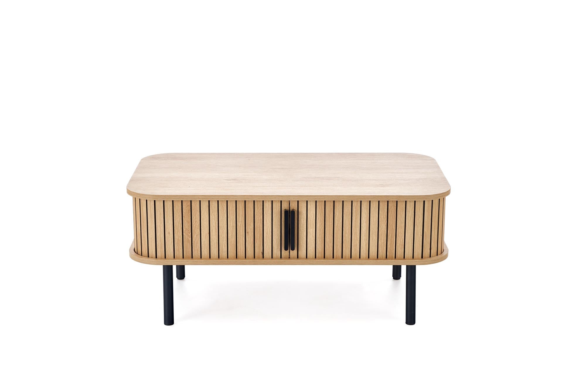 A Cobby dohányzóasztal természetes fa hatásával és függőleges lamellás kialakításával egy igazán modern, mégis otthonos bútordarab. A praktikus ajtók mögötti tárolóhely ideális a kisebb tárgyak elrejtésére, míg a lekerekített sarkok és fekete fém lábak elegáns, skandináv stílust idéznek. Tökéletes választás nappaliba, ahol a dizájn és funkcionalitás találkozik.