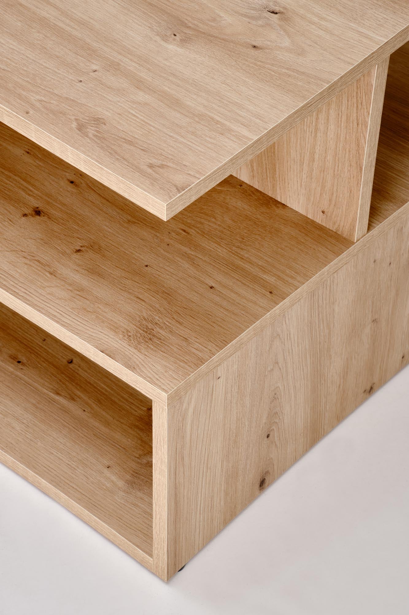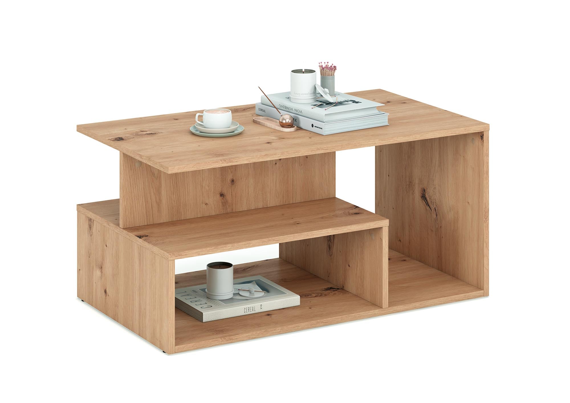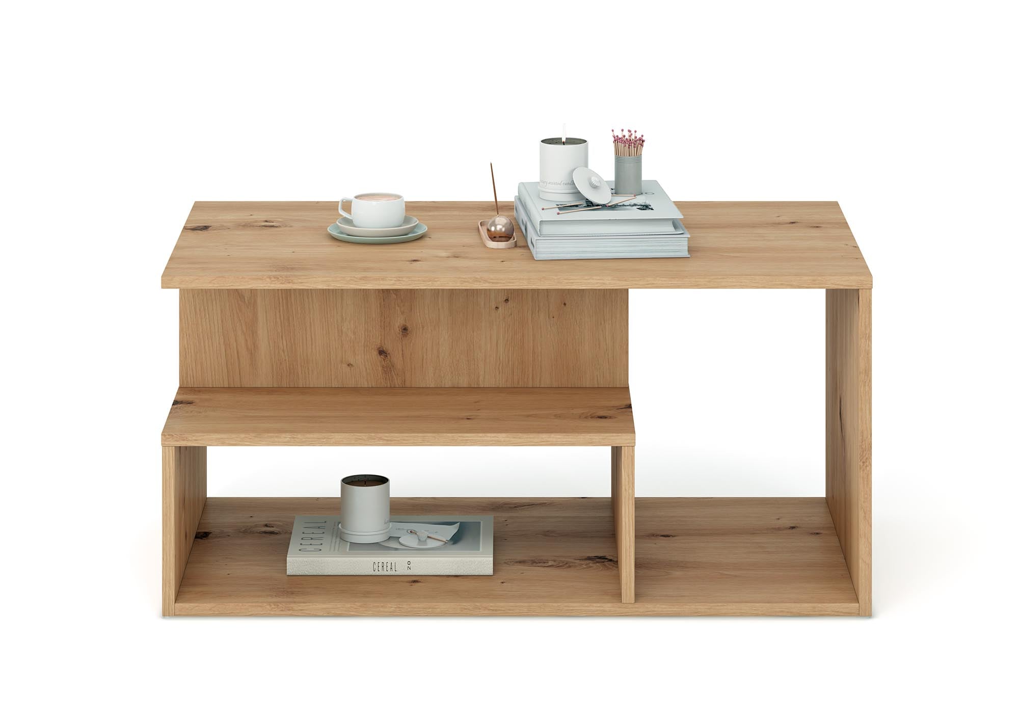A Crissa dohányzóasztal modern formavilágával és praktikus polcaival tökéletes választás egy letisztult nappaliba. Többszintű kialakítása bőséges tárolóhelyet biztosít könyveknek, dekorációknak vagy akár kávézáshoz szükséges eszközöknek. Artisan tölgy színének köszönhetően könnyen illeszkedik bármilyen enteriőrbe.