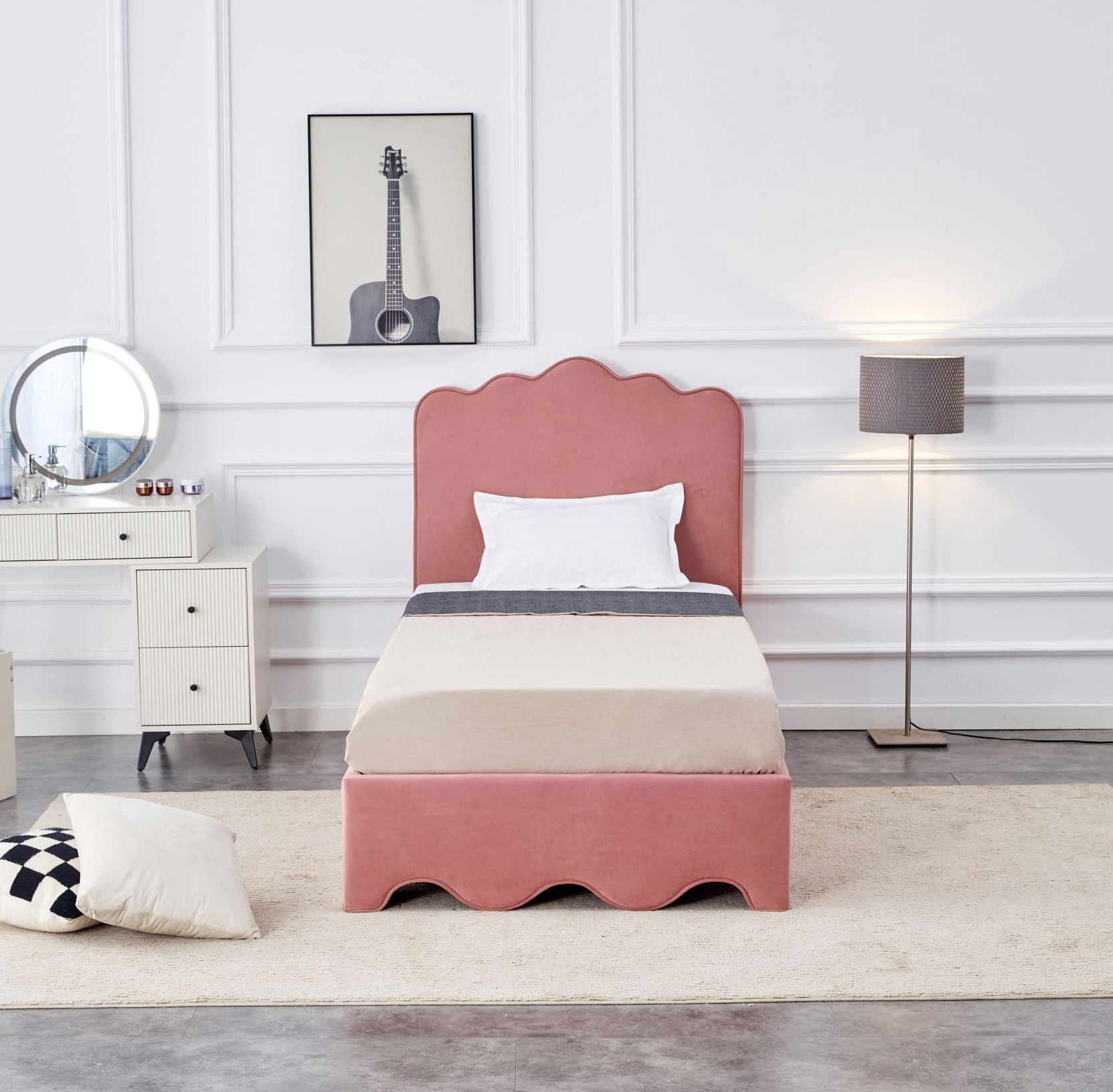 A Davina ágykeret bájos és játékos formavilágával egyedülálló hangulatot teremt a hálószobában vagy gyerekszobában. A hullámos szegélyek és lekerekített fejtámla finom romantikát sugároznak, míg a puha, bársonyos kárpitozás kényelmet és stílust biztosít. Tökéletes választás azoknak, akik szeretik a különleges, mégis harmonikus enteriőrt.