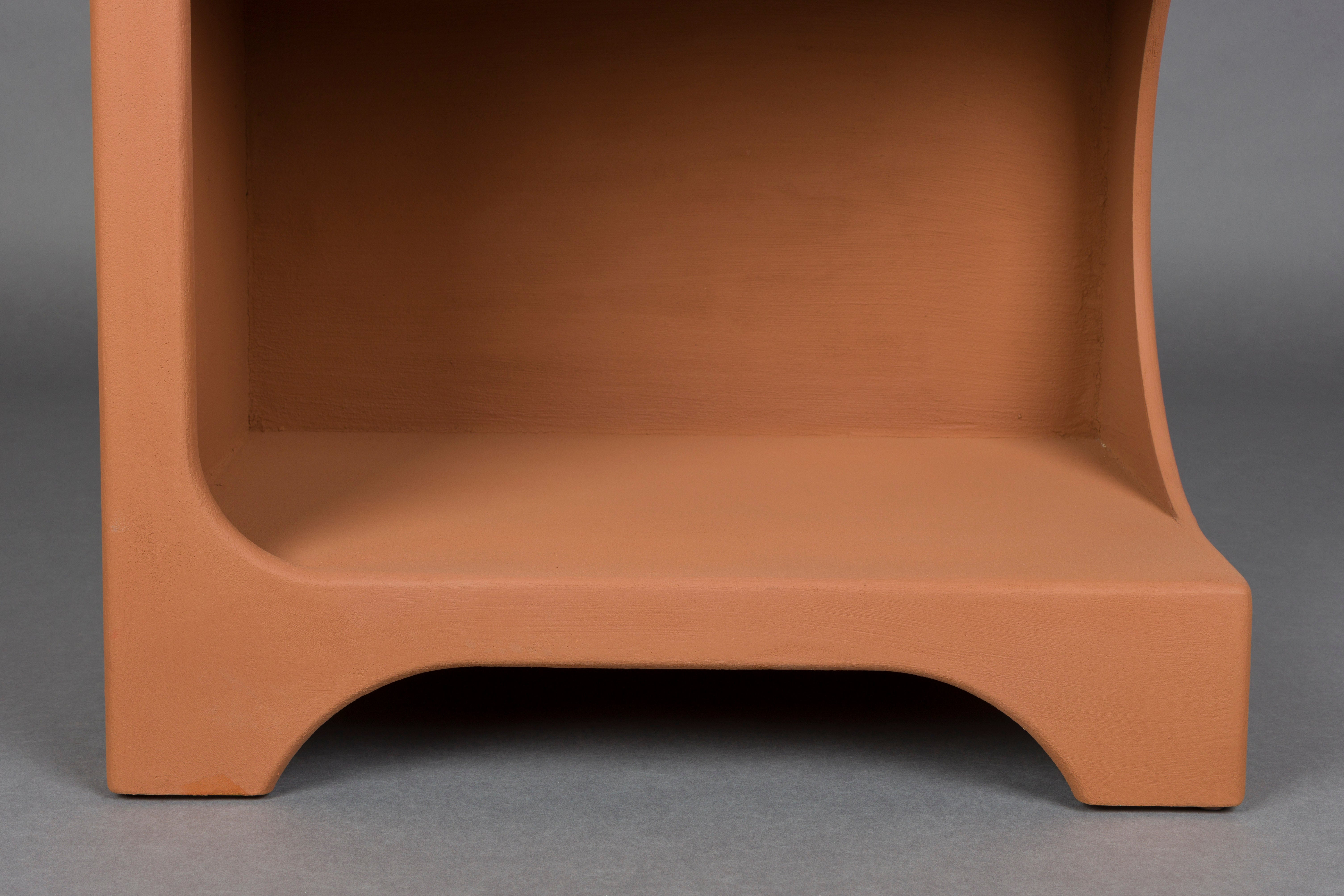 Egy bútordarabnak nemcsak praktikusnak kell lennie, hanem hozzá is kell adnia valamit az otthonod atmoszférájához. A Dundee polc pontosan ezt teszi. A különleges, félig megszakított vízszintes rekeszek játékos ritmust teremtenek, miközben bőséges tárolóhelyet biztosítanak. Két Dundee egymás mellé helyezve tökéletesen illeszkedik, így könnyedén alakíthatsz ki belőlük moduláris tárolórendszert. A meleg terrakotta szín és a matt felület együtt egy finom retró hangulatot hoznak létre, amely karaktert ad bármely térnek. A polc több méretben is elérhető, így könnyedén igazítható az igényeidhez.