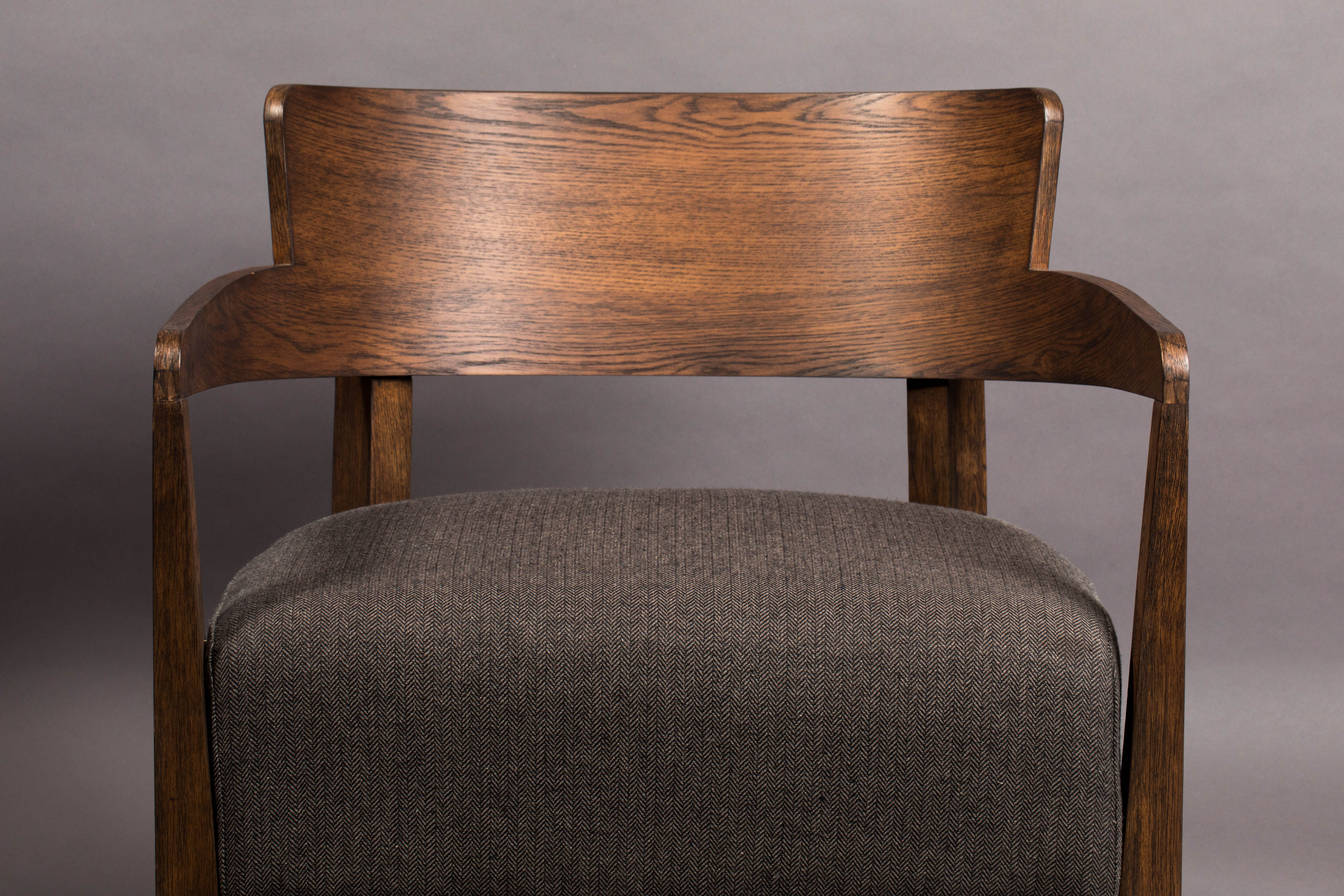 Alakítsd otthonodat olyan hellyé, ahol igazán jól érzed magad – ahol inspirációt meríthetsz egy jó könyvből, egy klasszikus filmből vagy különleges enteriőr tárgyakból. A Duran fotel első pillantásra egyszerűnek tűnhet, ám valójában a tiszta kézművesség megtestesítője. A háttámla egyetlen darab fából készült, mely minőségi tölgyből van kialakítva és gazdag, mély árnyalattal lakkozva. Ez a kifinomult részlet adja a fotel elegáns karakterét. A megemelt ülőpárna és az arányos vonalvezetés a ’50-es évek hangulatát idézi, modern csavarral kiegészítve.