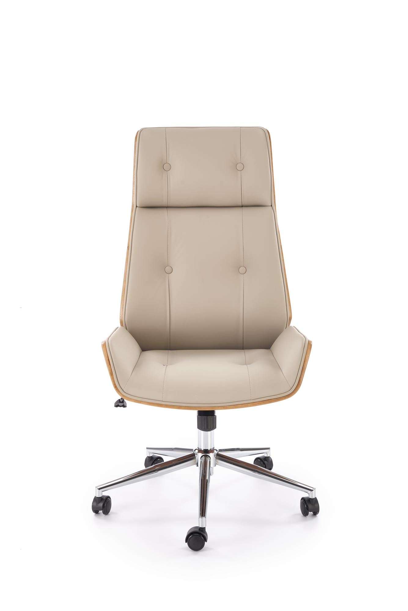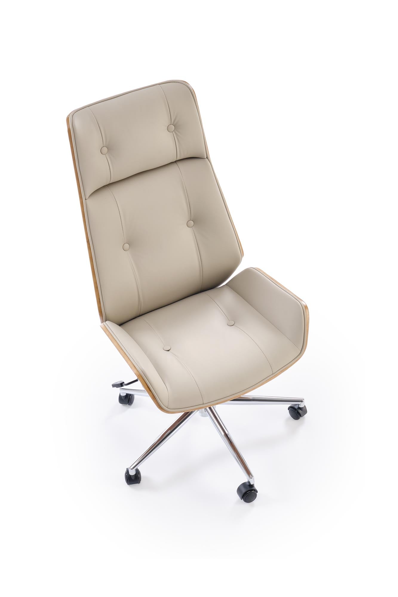 Az Ellison irodai forgószék elegáns megjelenésével és kényelmes kialakításával tökéletes választás dolgozószobába vagy home office-ba. A hajlított fa hátlap, a gombos steppeléssel díszített párnázat és a krómozott lábcsillag modern, mégis klasszikus hatást kelt. Az ülésmagasság állítható, a görgők pedig gördülékeny mozgást biztosítanak, így a szék nemcsak stílusos, de praktikus is a mindennapi használathoz.