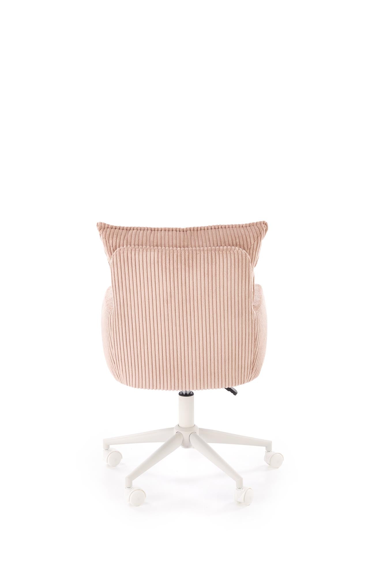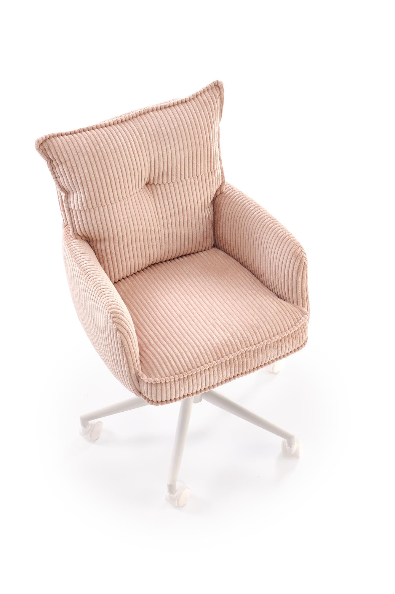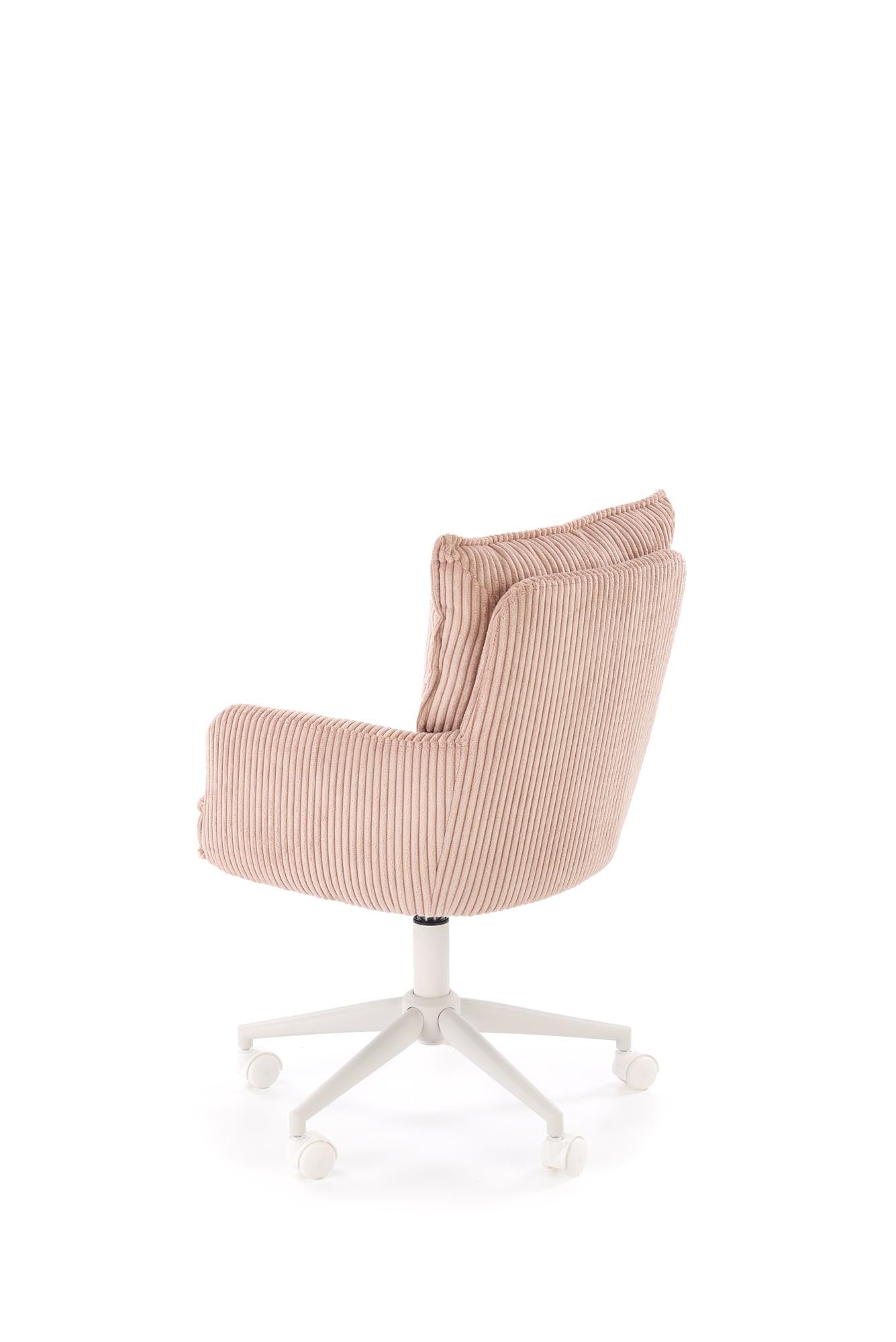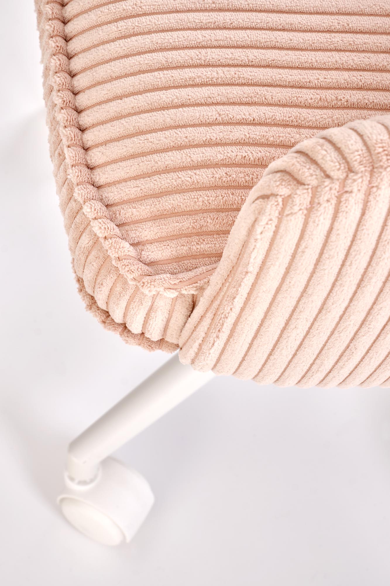 A Fancy irodai forgószék játékos megjelenésével és kényelmes kialakításával ideális választás otthoni munkakörnyezetbe vagy fiatalos irodákba. A puha, bordázott szövetkárpit meleg, barátságos hatást kelt, míg a párnázott háttámla és ülőfelület gondoskodik a komfortos ülésről. A fehér lábcsillag és a görgők könnyed mobilitást biztosítanak, így a szék nemcsak stílusos, de praktikus is.