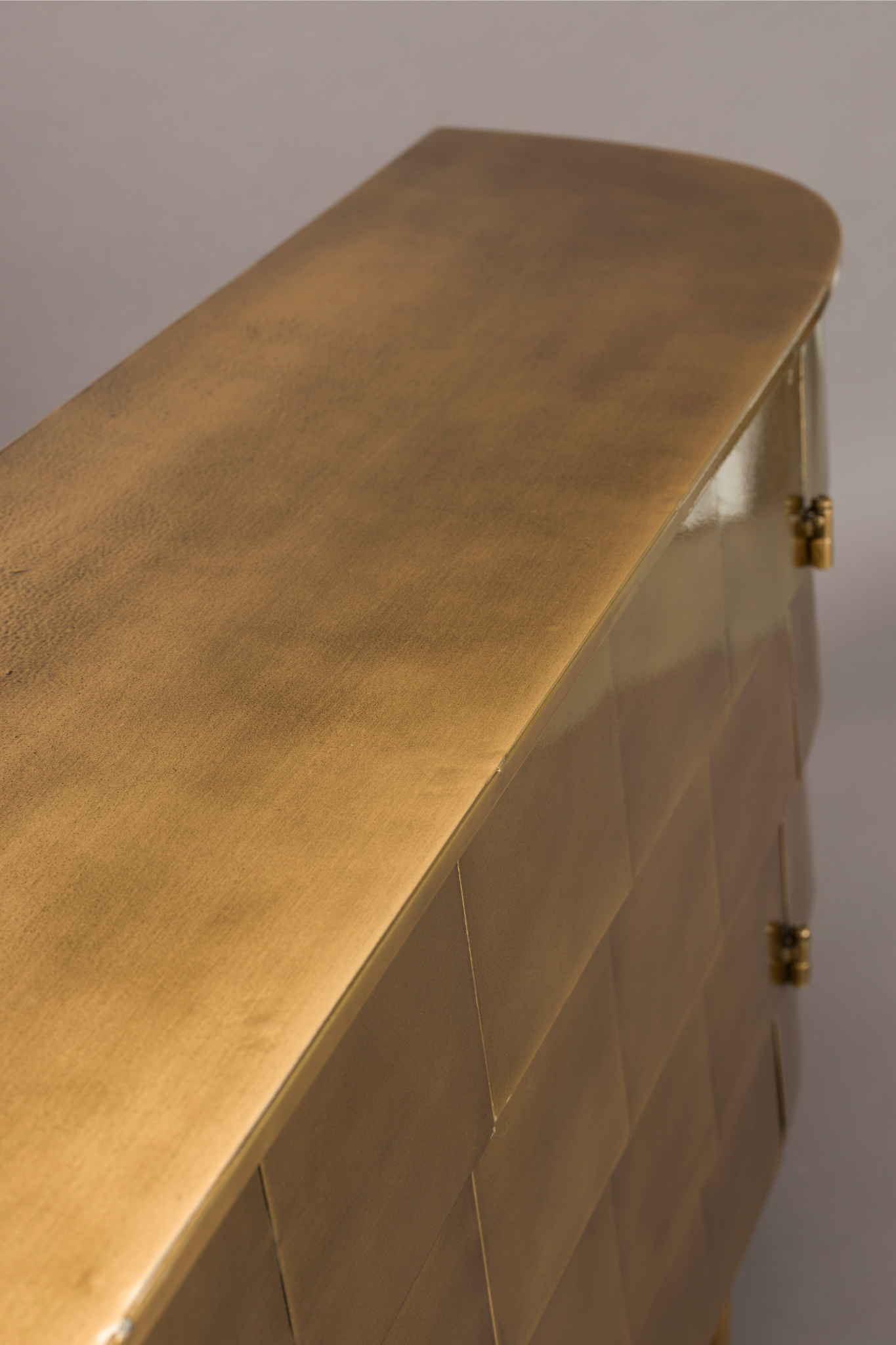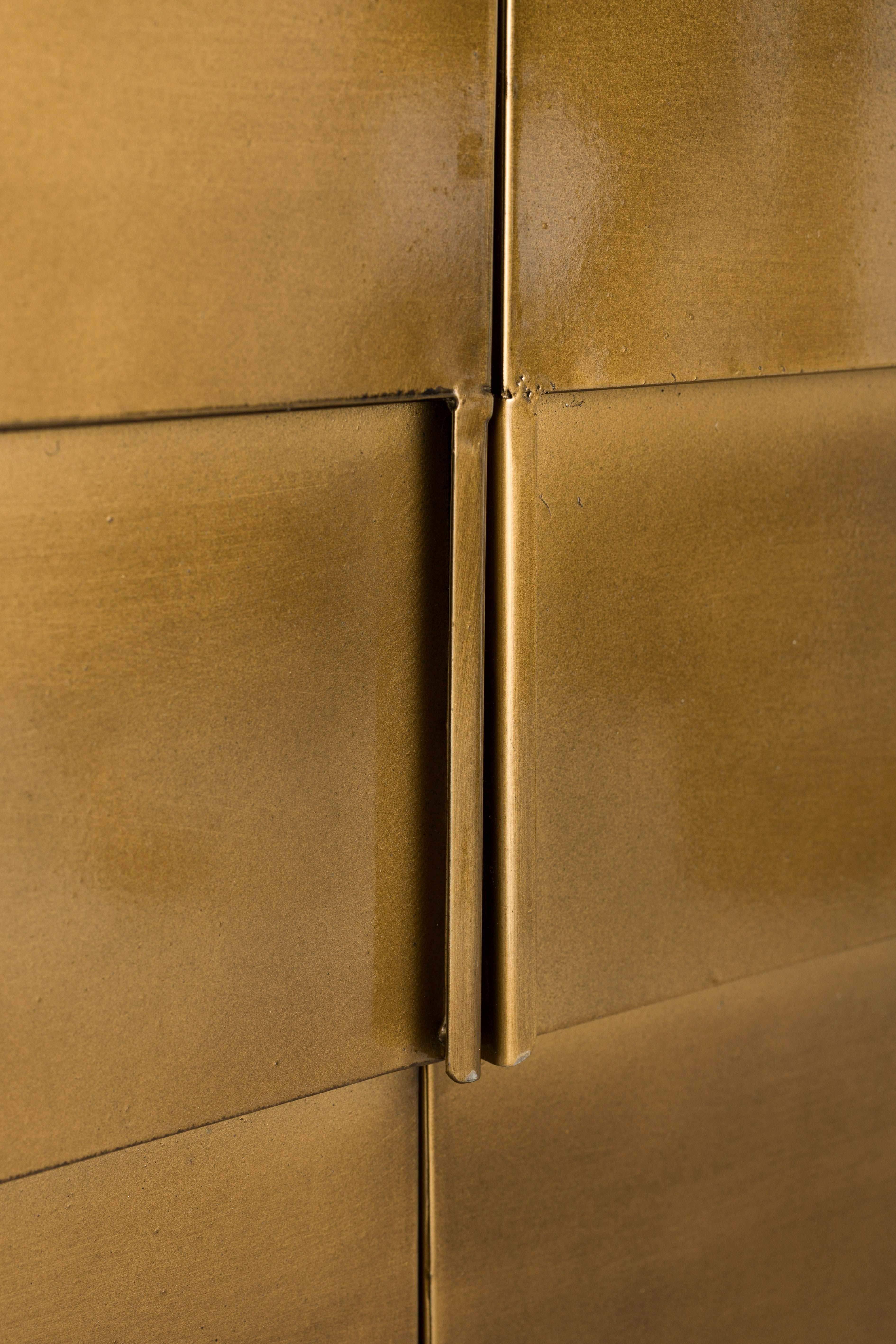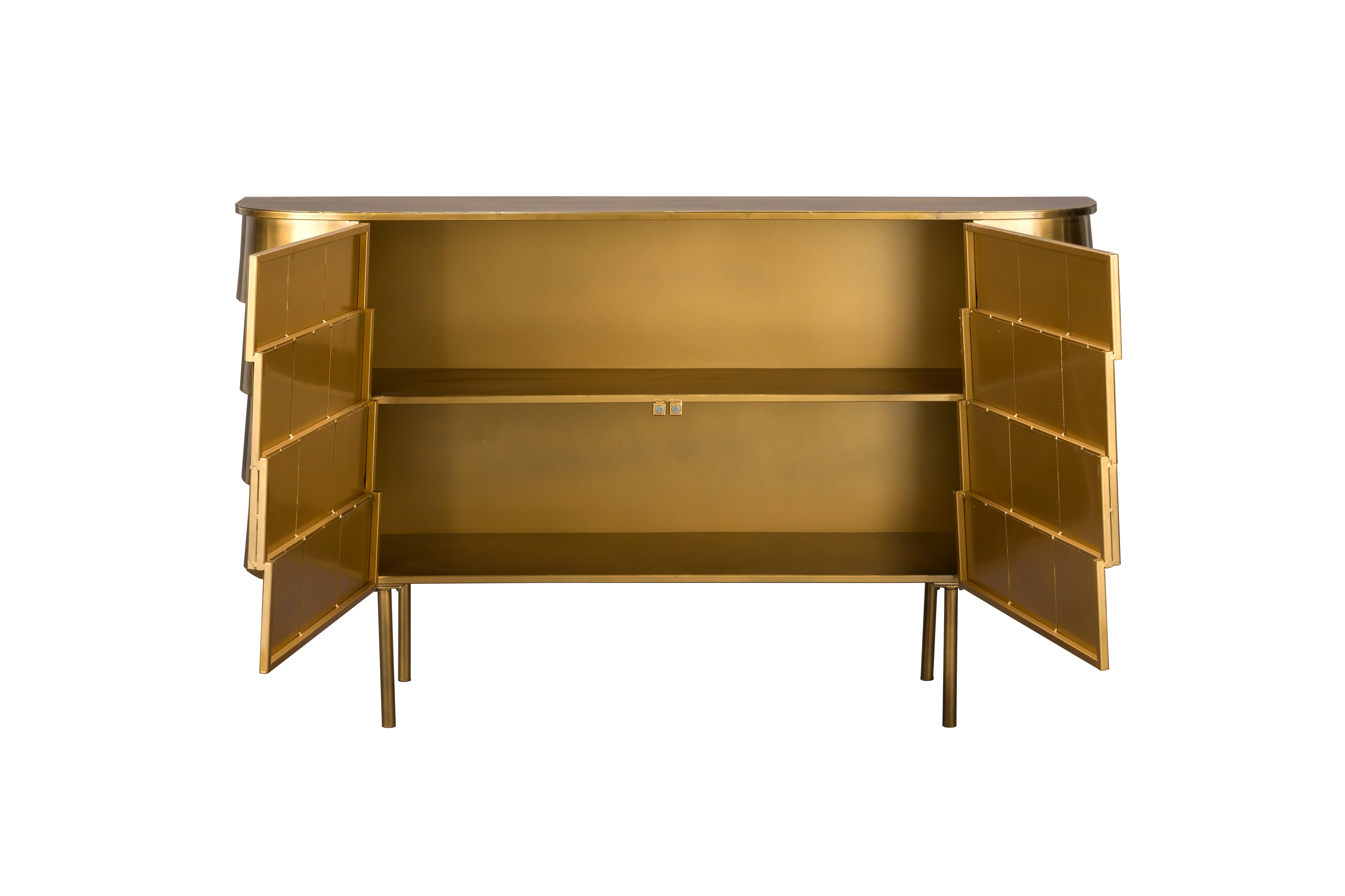 Ha szereted egyedi darabokkal megtölteni az otthonodat, a Hanna komód tökéletes választás. Letisztult formavilága és a régi idők minőségi bútorait idéző megjelenése különleges hangulatot visz bármely enteriőrbe. A bútor szerkezete egymásra helyezett, négyzetes felületekből áll, ami igazán egyedi, filmszerű látványt teremt – mintha egy klasszikus vintage mozi díszletéből érkezett volna. A masszív fém kivitel, apró, szándékos tökéletlenségekkel és a ragyogó aranyszínű felülettel, karaktert és eleganciát sugároz. A visszafogott ajtók mögött pedig bőséges tárolóhely rejlik, így a Hanna nemcsak stílusos, hanem kifejezetten praktikus darabja is otthonodnak.