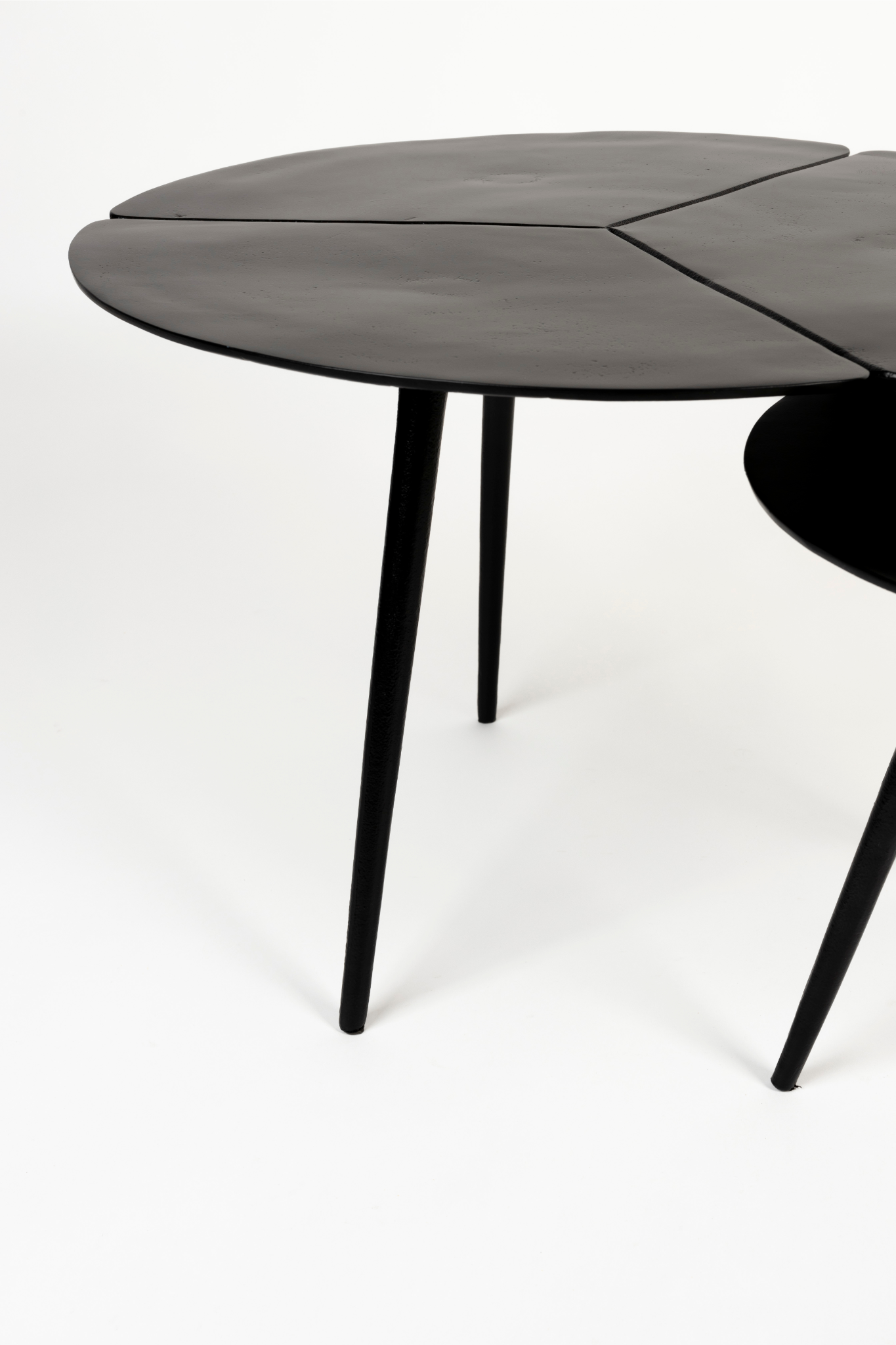 A Kourdebour dohányzóasztal szett különleges, fekete liliomlevél formájú asztallapjaival azonnal magára vonja a tekintetet. A masszív alumínium kialakítás nemcsak időtállóságot, hanem kifinomult stílust is biztosít, így hosszú éveken át dísze lehet otthonodnak. A három lekerekített láb harmonikus egyensúlyt teremt az organikus formák és a stabil szerkezet között. Akár együtt, akár külön elhelyezve használod, a Kourdebour szett minden enteriőrbe egy csipetnyi természetes eleganciát és modern karaktert visz.