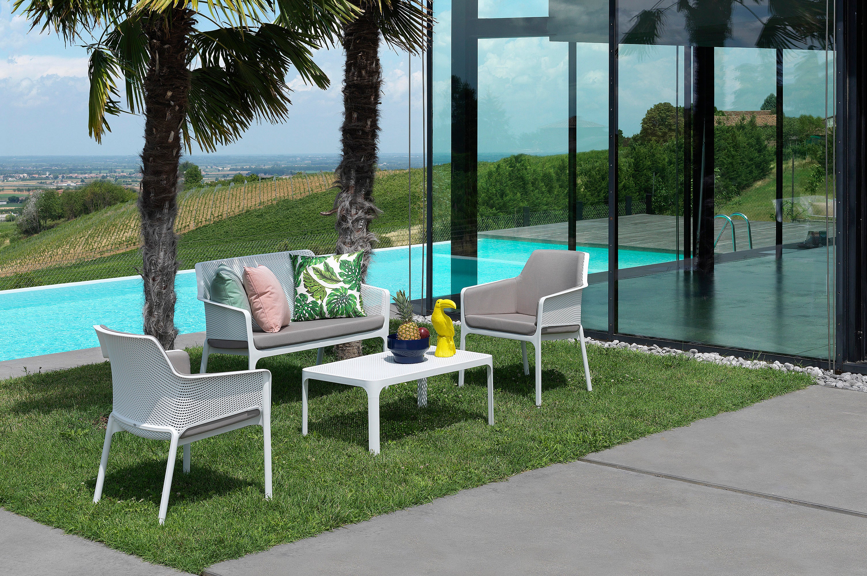 A Net pad minden, amit a szabadtéri élet örömeihez kívánhatunk: letisztult olasz formavilág, kényelmes ülőfelület, és egy olyan hangulat, ami azonnal a tengerparti villák verandáira repít. A perforált mintázatú háttámla és ülőrész légies könnyedséget ad a bútornak, miközben a fibreglass műgyanta anyag gondoskodik a tartósságról és az UV-állóságról. Akár medence mellé, akár egy árnyas teraszra kerül, a Net kültéri pad tökéletes társ a nyári beszélgetésekhez, egy pohár borhoz vagy egy csésze reggeli kávéhoz. A puha ülőpárna még magasabb szintre emeli a kényelmet, így te csak hátradőlsz – és élvezed a napfényt, a nyugalmat és az élet örömeit, ahogy azt az olaszok is teszik.