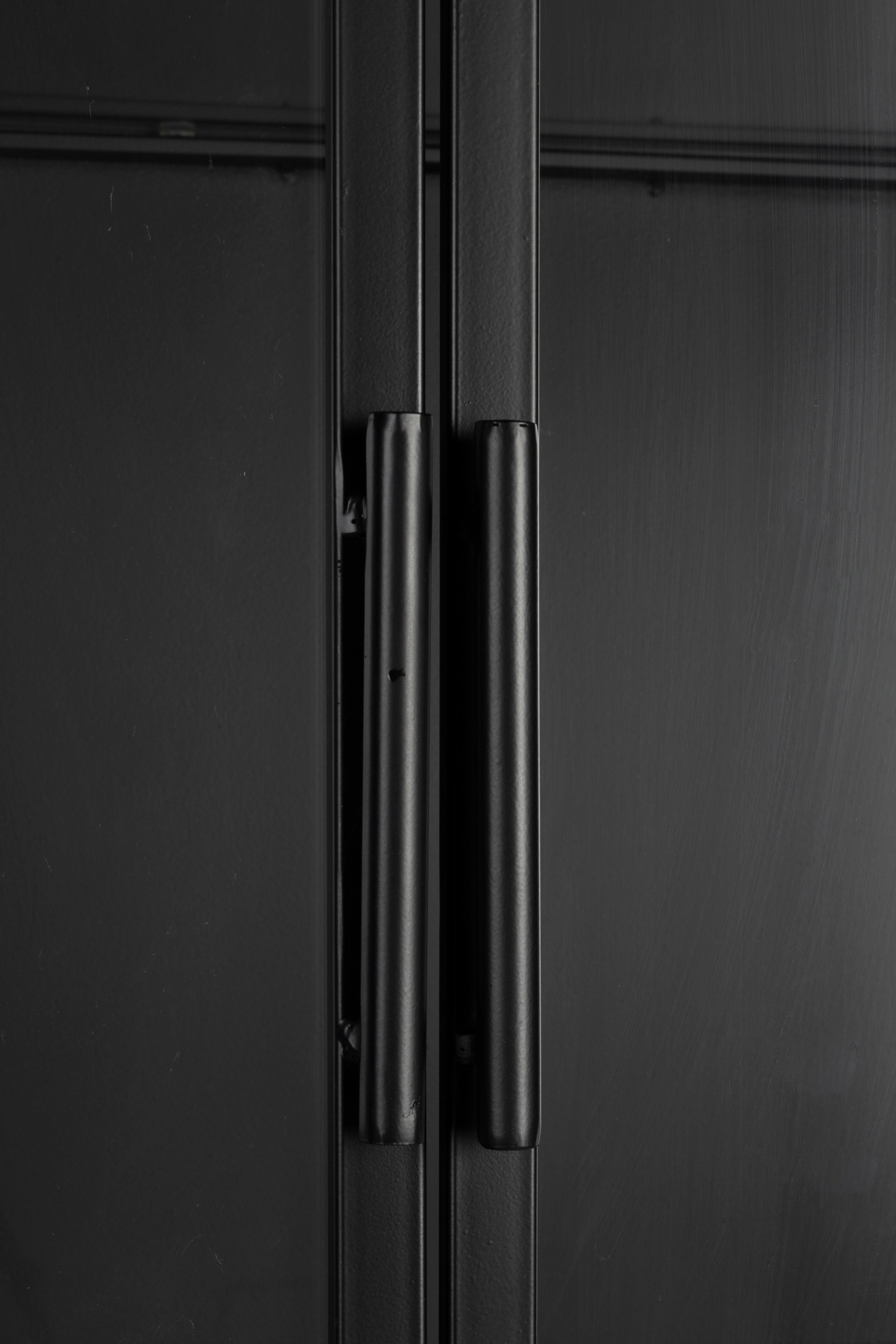 A Rob szekrény tökéletes választás, ha otthonod legszebb darabjait szeretnéd méltó helyen bemutatni. A fekete fémből készült, letisztult vonalvezetésű szekrény nagy üvegfelületekkel rendelkezik, így minden benne elhelyezett tárgy biztonságban van, miközben folyamatosan a figyelem középpontjába kerül. Legyen szó koktélospoharakról, különleges étkészletről vagy kedves emlékeket őrző dísztárgyakról, a Rob gondoskodik arról, hogy mindegyik megkapja a neki járó reflektorfényt.