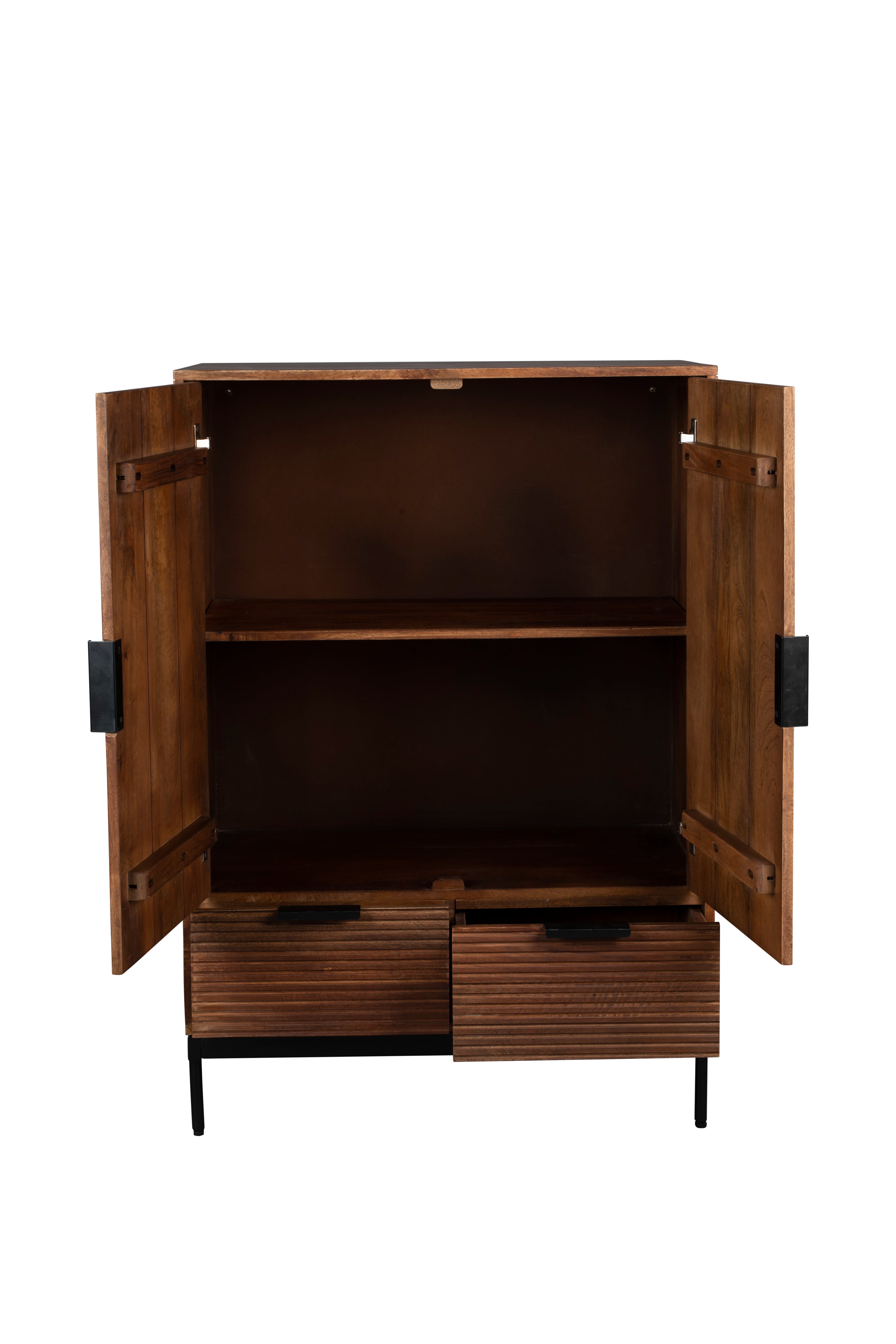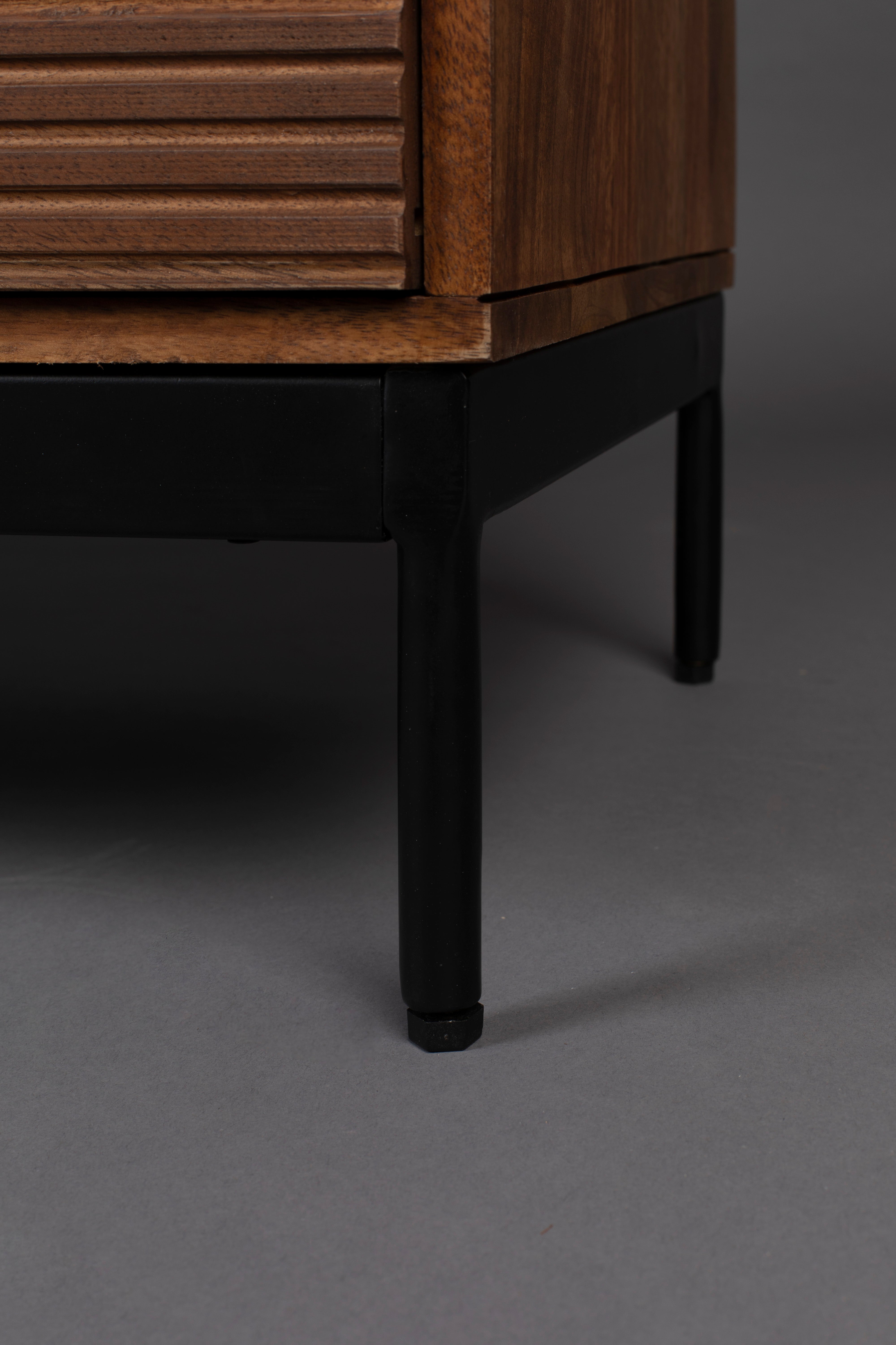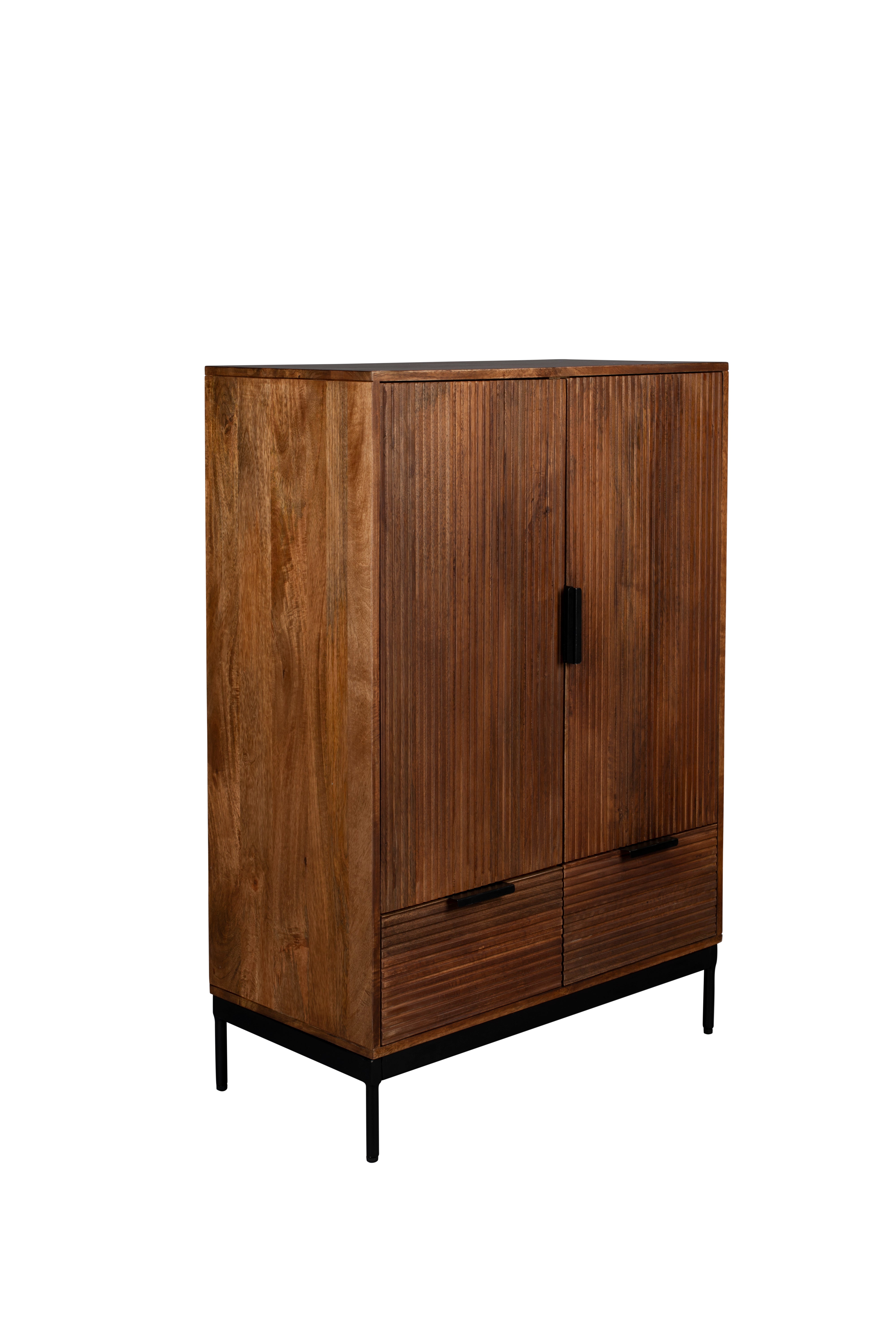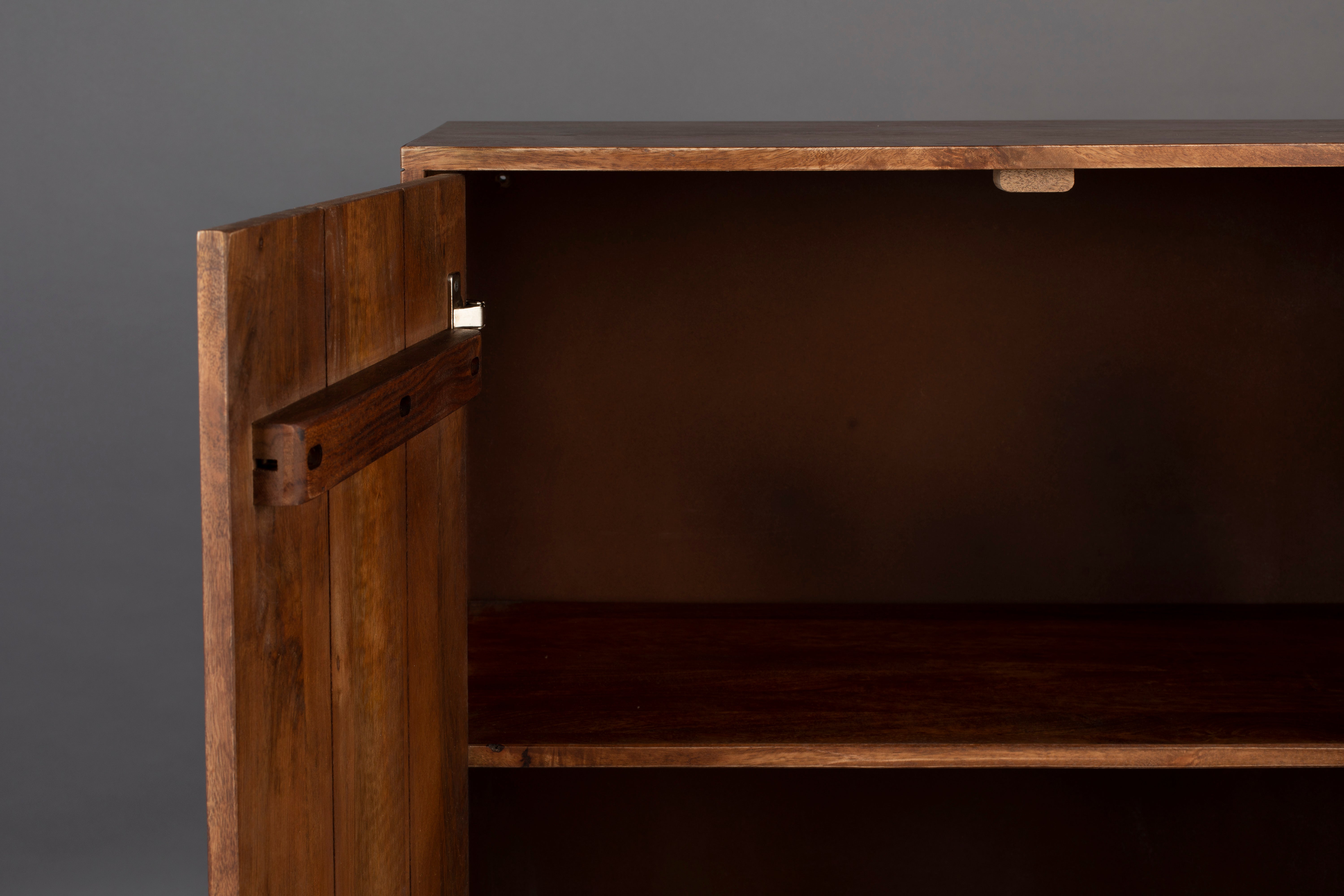 A Saroo magaskomód a múlt időtlen báját és a jelen trendjeit ötvözi egy különleges bútordarabban. A tömör mangófából készült felületeket finoman mart grafikus minták díszítik, amelyek azonnal egyedi karaktert kölcsönöznek a komódnak, és visszafogott vintage hangulatot árasztanak. A kontrasztot a matt fekete részletek teremtik meg – a porszórt acél lábak és fogantyúk modern hatást adnak, így a Saroo bármelyik korszerű enteriőrben is otthonra talál. A komód ráadásul nemcsak látványos, hanem rendkívül praktikus is: tágas belső tere könnyedén elnyeli a mindennapi tárgyakat, miközben a nappaliban, étkezőben vagy hálószobában is meleg, hívogató légkört teremt.