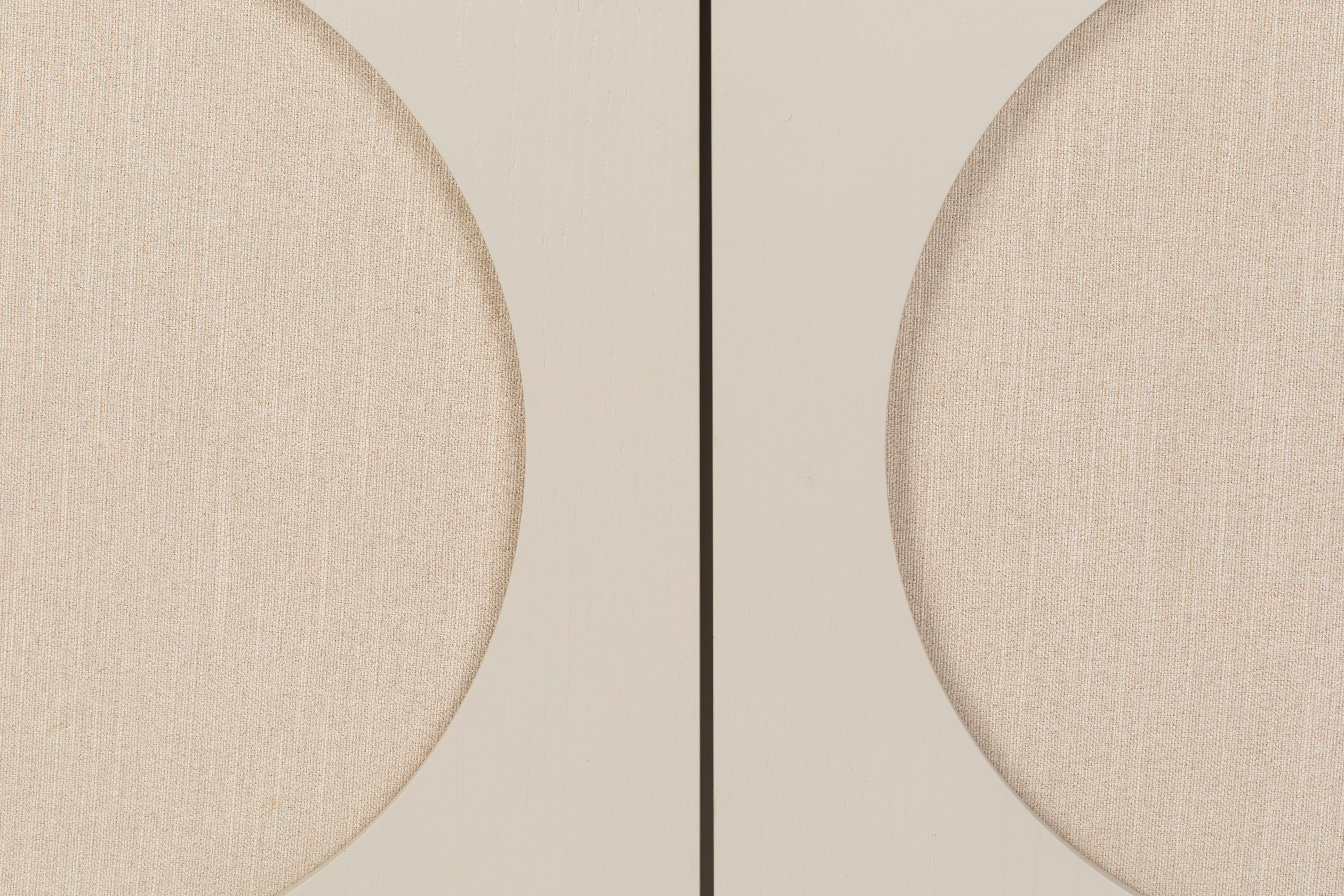 A Twin komód elegáns és praktikus megoldás mindazoknak, akik a funkcionalitást szeretnék ötvözni egyedi dizájnnal. Az ajtókat díszítő puha textil kör finom, játékos részlet, amely azonnal karaktert ad a bútornak. A belsőben két tágas polc kínál helyet minden szükséges holminak, így a komód egyszerre esztétikus és rendkívül praktikus. Az akácfából készült testet szürkés tónusú felület emeli ki, amely szépen kihozza a fa természetes erezetét. A karcsú, letisztult lábak biztosítják a stabilitást, miközben könnyed, légies megjelenést kölcsönöznek a bútornak. A Twin sorozat két méretben érhető el: komód és éjjeliszekrény, így könnyedén összehangolhatod az otthonodban.