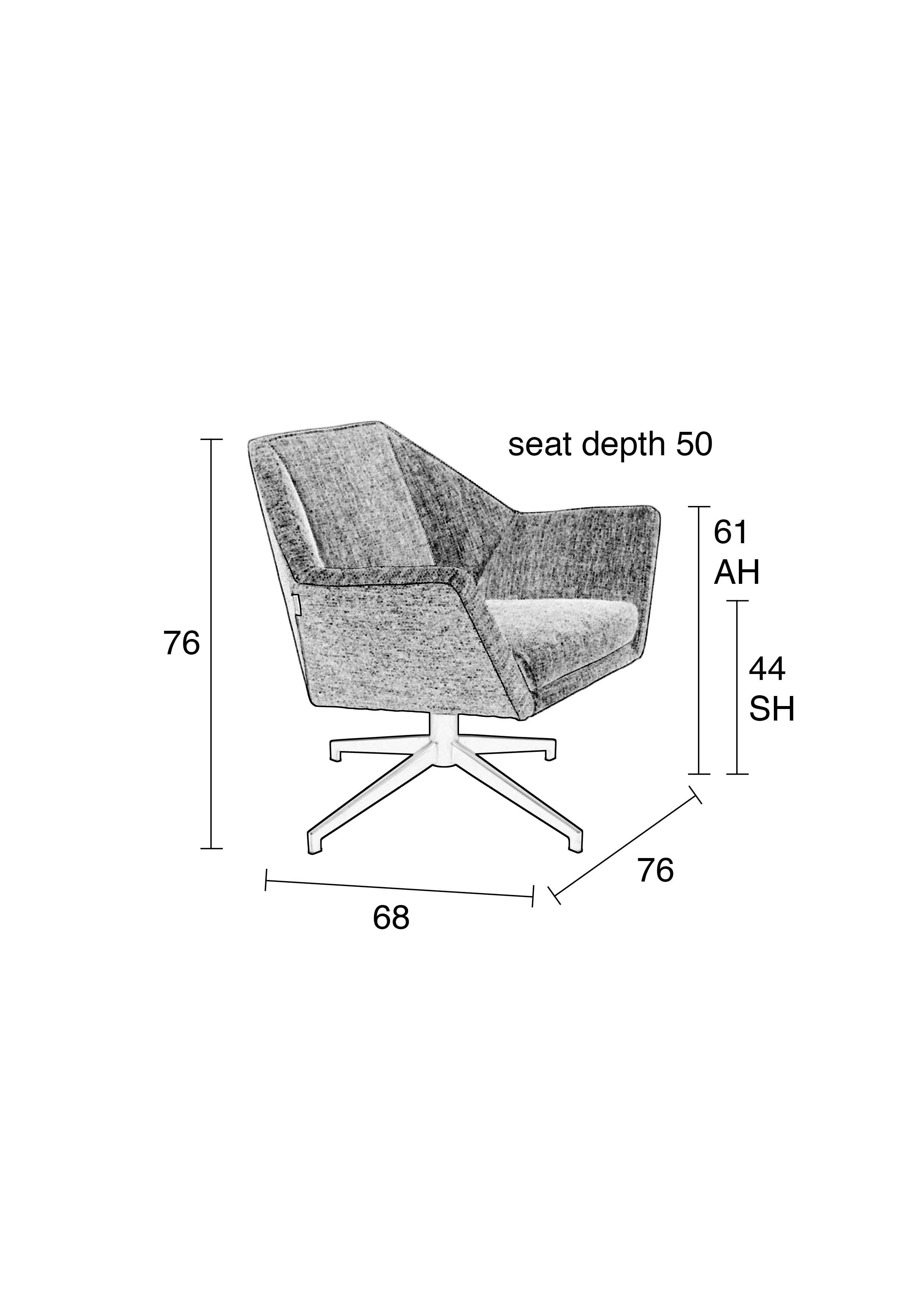 Szélesség 76 cm, Magasság 76 cm, Mélység 68 cm