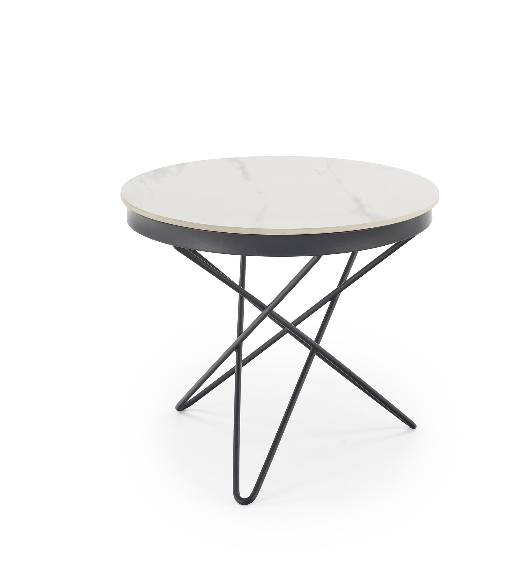 A Chip II dohányzóasztal egy modern, játékos és könnyed stílusú darab, amely garantáltan különleges karaktert kölcsönöz bármely helyiségnek. A márványhatású kerek asztallap elegáns megjelenést biztosít, míg a keresztbe futó fém lábak egyedi, geometrikus megjelenést adnak az összképnek. A Chip II nemcsak praktikus, de vizuálisan is izgalmas választás – egy apró részlet, amely nagy hatást kelt.
