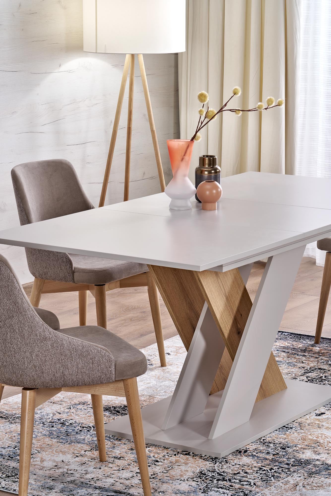 Valami természetes, de mégis extra bútort keresel otthonodba? Akkor a Toby étkezőasztalt neked találtuk ki. Kellemes, világos lancelot tölgy és fehér tónusokban pompázik, mellyet finoman egészítenek ki az asztallábat kialakító, egymást keresztező lapok.