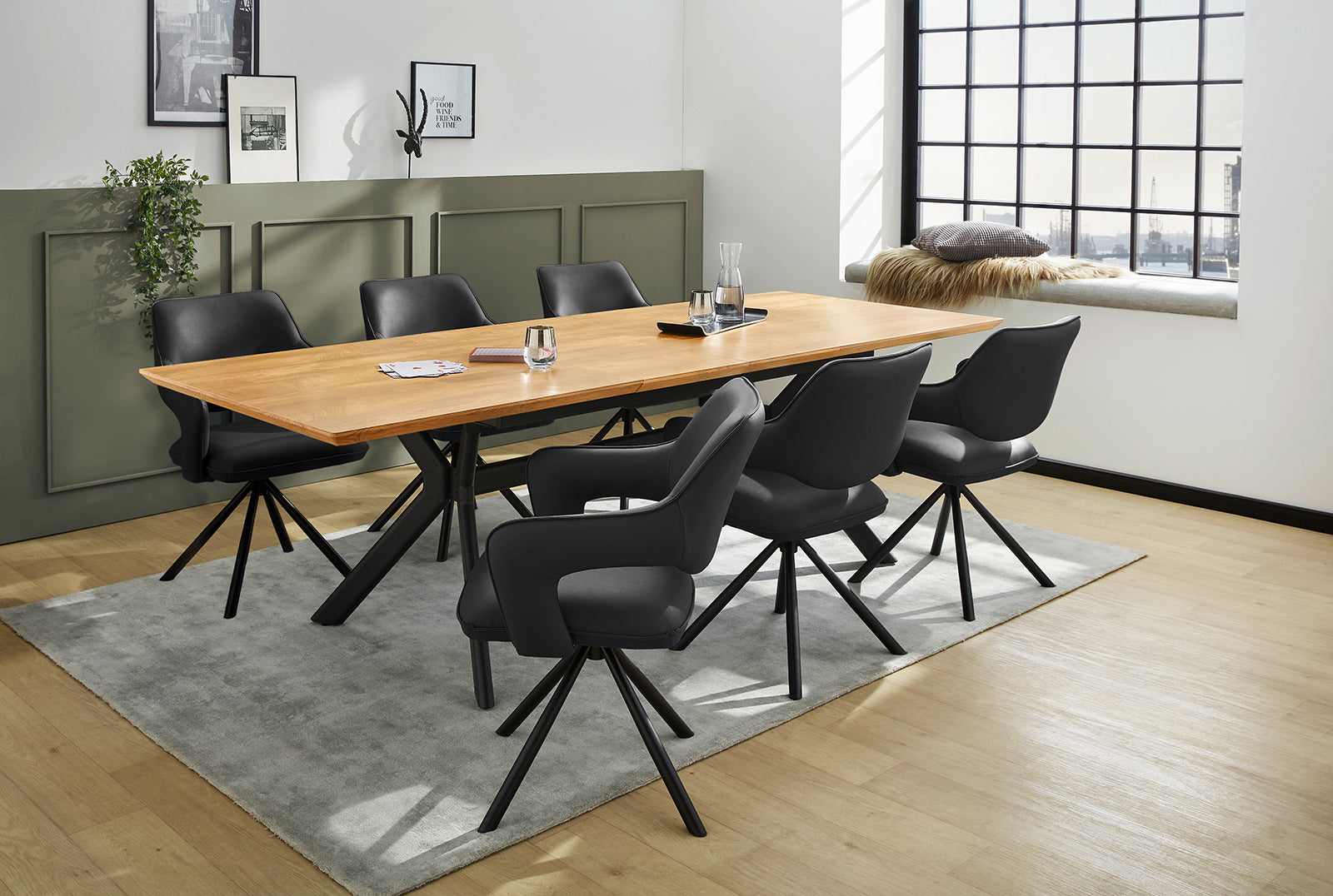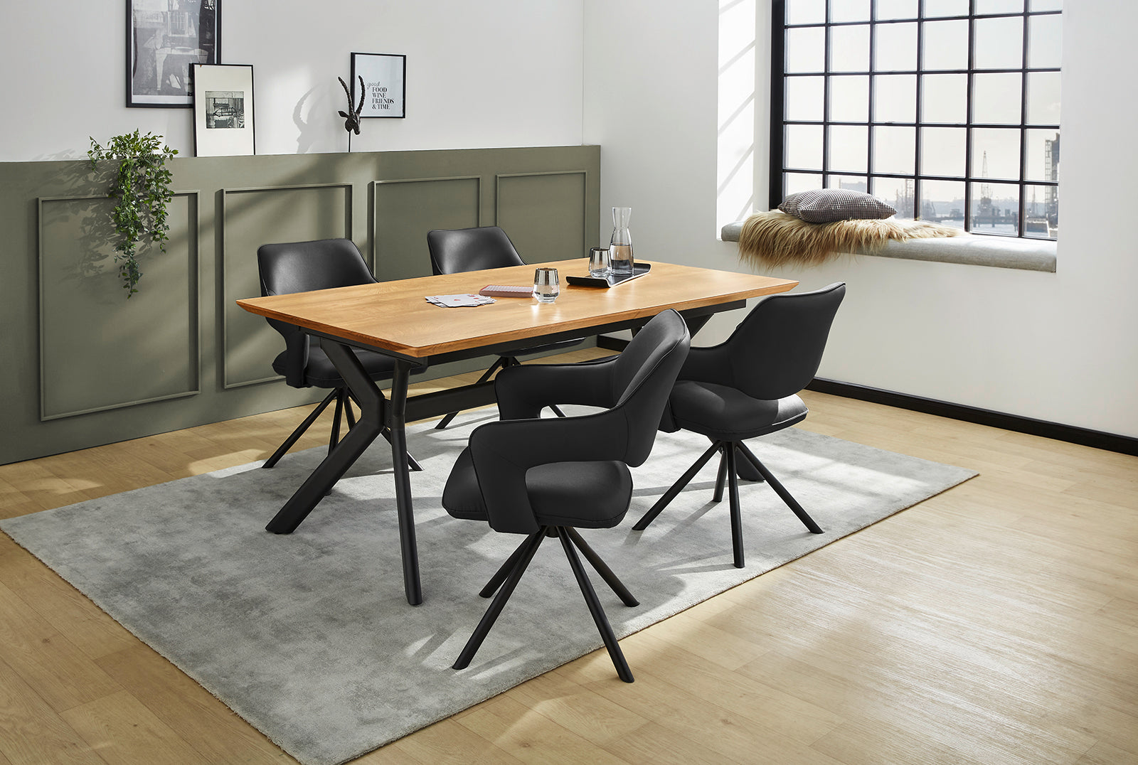 Az Ellie szék a modern kényelem elegáns, fotel-szerű változata: lágyan ívelt háttámlája és integrált karfái kellemesen körülölelnek, miközben a letisztult forma könnyedén illeszkedik étkezőbe, dolgozósarokba vagy akár egy stílusos tárgyalóba is. A 360°-ban forduló lábszerkezet természetes mozgásszabadságot ad, így könnyedén fordulhatsz a beszélgetés, a munkafelület vagy az asztal felé anélkül, hogy a széket tologatnád. Zöld színben karakteres, mégis nyugodt fókuszpontot teremt, fekete változatban pedig időtállóan elegáns, határozott megjelenést ad a térnek. Az Ellie azoknak szól, akik egy székben a kényelmet és a kifinomult megjelenést egyszerre szeretnék megkapni.