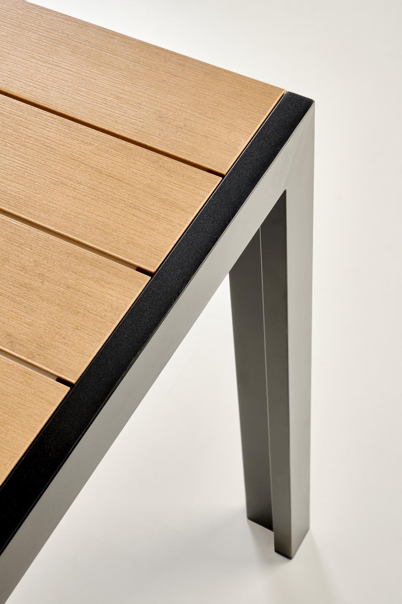 A Capron kerti asztal a funkcionalitás és az időtálló dizájn tökéletes találkozása. A minimalista fekete fém váz modern karaktert kölcsönöz, míg a meleg fa hatású asztallap természetes hangulatot visz a kültéri térbe. Kompakt mérete miatt ideális választás kisebb teraszokra, erkélyekre vagy kerti pihenősarkokba. Az asztallap időjárásálló anyagból készült, így gond nélkül kint hagyható az év nagy részében, a porfestett fém váz pedig strapabíró és rozsdaálló. A Capron asztal tökéletes választás, ha olyan kerti bútort keresel, amely egyszerre praktikus, esztétikus és tartós. Párosítsd hozzáillő székekkel, és alakíts ki egy igazán hívogató kültéri étkezősarkot!
