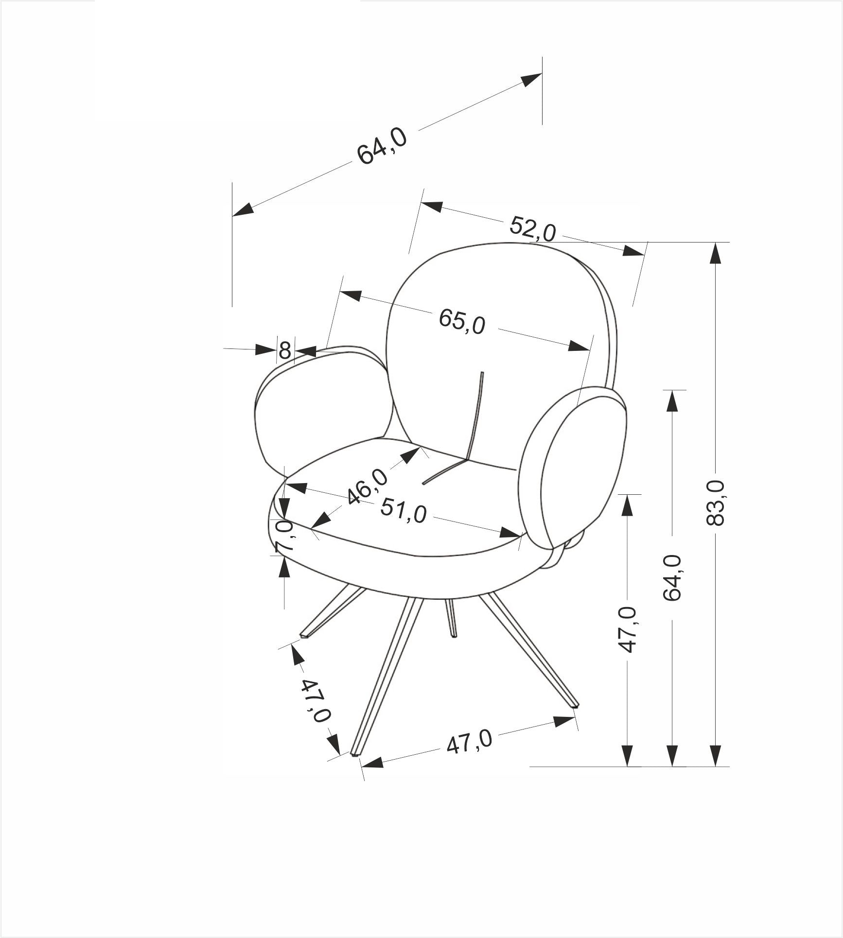 Szélesség 65 cm, Magasság 82 cm, Mélység 64 cm