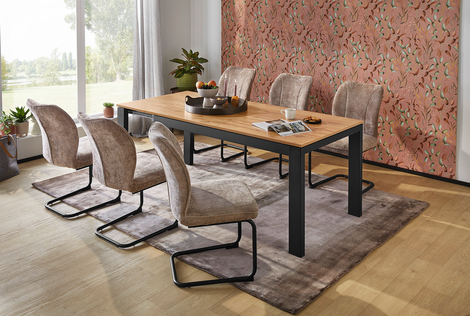 A Gabriella étkezőasztal azoknak készült, akik szeretik, ha az étkező egyszerre tud otthonos lenni a hétköznapokban és nagyszabású a vendégségek idején. A 160–240 × 90 cm-es méret tartalékot ad: alapállapotban kényelmesen használható, bővítve pedig valódi közösségi tér lesz belőle – ahol mindenki elfér, és ahol jó megállni egy beszélgetésre. A bővítés többszörösen megoldható, így mindig pont akkora asztalt kapsz, amekkorára éppen szükséged van. A pillangó nyitás gyors és kényelmes: a betét praktikus módon „előbújik”, az asztal pedig pillanatok alatt nagyobb lesz. A mindennapi használatot tovább könnyítik a görgők a lábakon, amelyek a nyitást és mozgatást gördülékennyé teszik, minimális erőkifejtéssel. A Gabriella tartósságát a melamin asztallap biztosítja, amely a mindennapi igénybevételhez is ideális választás – könnyen kezelhető, praktikus felület, ami hosszú távon is jól használható.