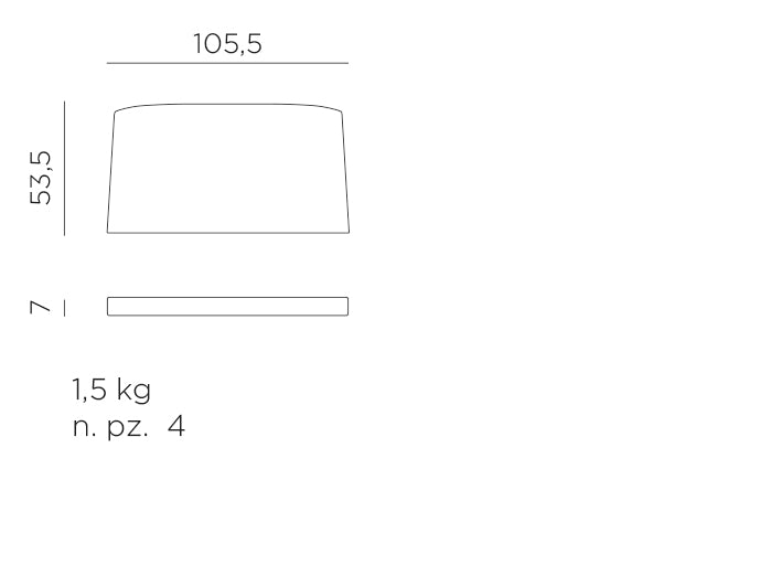 Szélesség 105.5 cm, vastagság: 7 cm, Mélység 53.5 cm