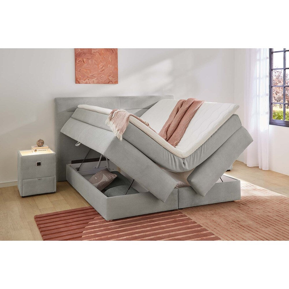 A Vivian boxspring ágy a nyugodt, rendezett és igazán kényelmes hálószobák alapdarabja. Letisztult formavilága és a kiváló minőségű szövetborítás elegáns, prémium megjelenést ad az ágykeretnek és az ágyvégnek, miközben a Vivian a praktikum terén is kiemelkedőt nyújt. Az ágyhoz matrac is tartozik, ráadásul fordítható kivitelben, így a használat rugalmasabb, a komfort pedig hosszabb távon is megőrizhető. A rendet és a helytakarékosságot a V nyitású ágyneműtartó segíti: könnyű hozzáférést biztosít, és ideális megoldás az ágyneműk, takarók vagy szezonális textíliák tárolására. A Vivian „bekuckózós” karakterét a párnázott fejvég extra párnákkal teszi teljessé – kényelmes támasz olvasáshoz, pihenéshez, esti kikapcsolódáshoz. A tágas fekvőfelület pedig 2 személy számára is komfortos, így a Vivian tökéletes választás közös pihenéshez.